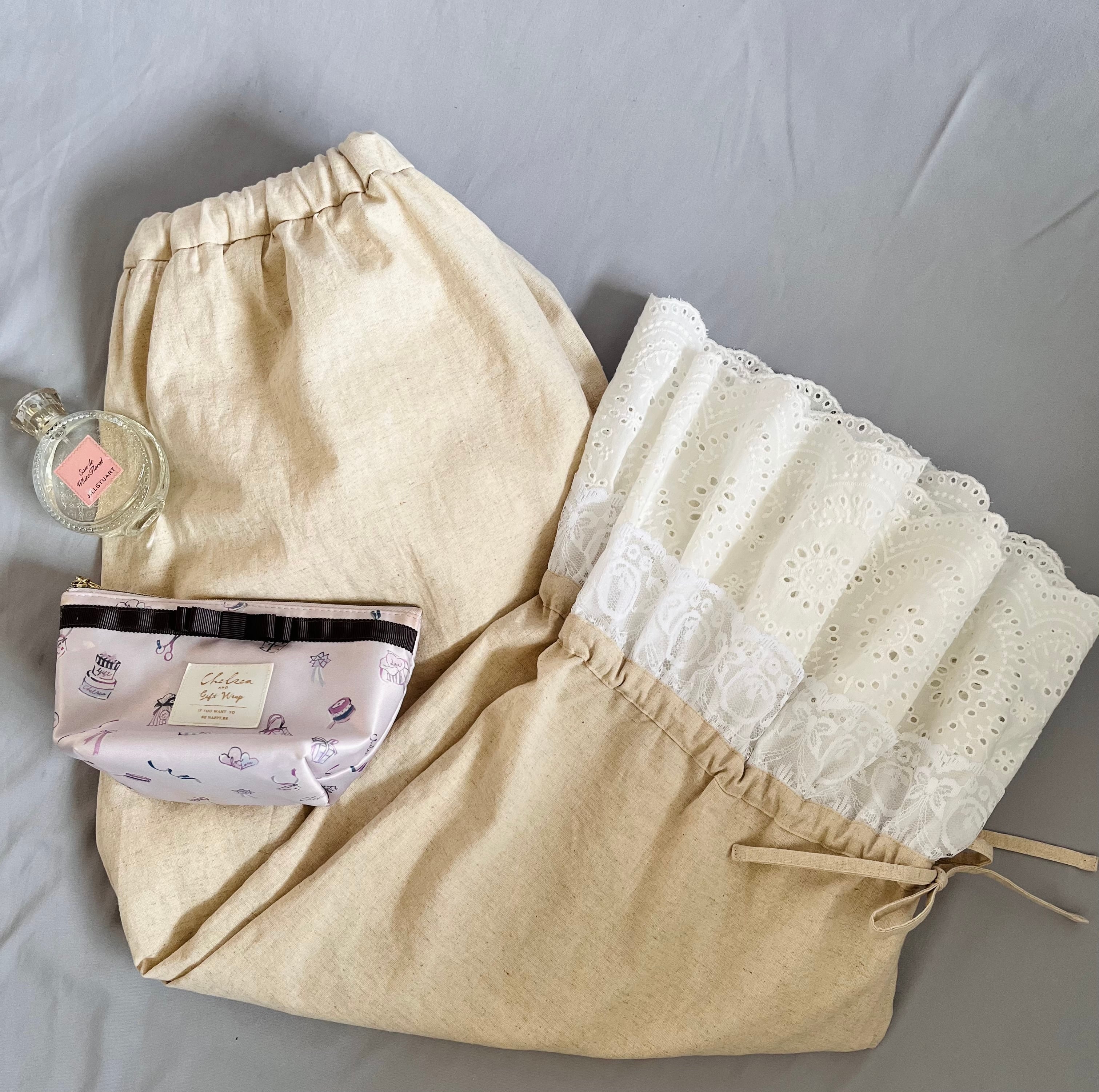 (ウエストひもで調整可・裾リボンで丈調整可)