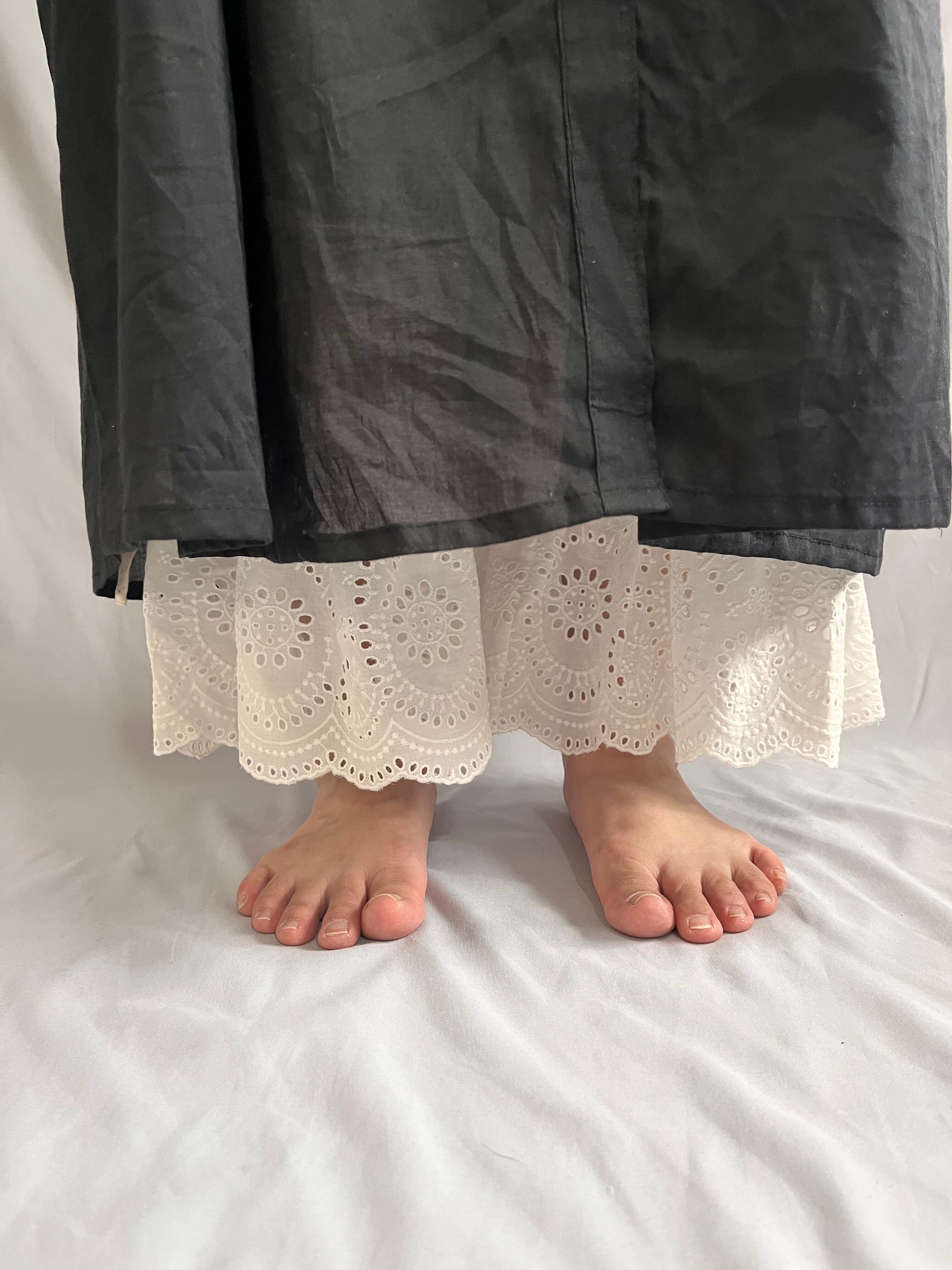 足元で揺れる約20cm幅のレースは、スカートの下から覗かせても、これ一枚でボトムスとして楽しんでもOK!