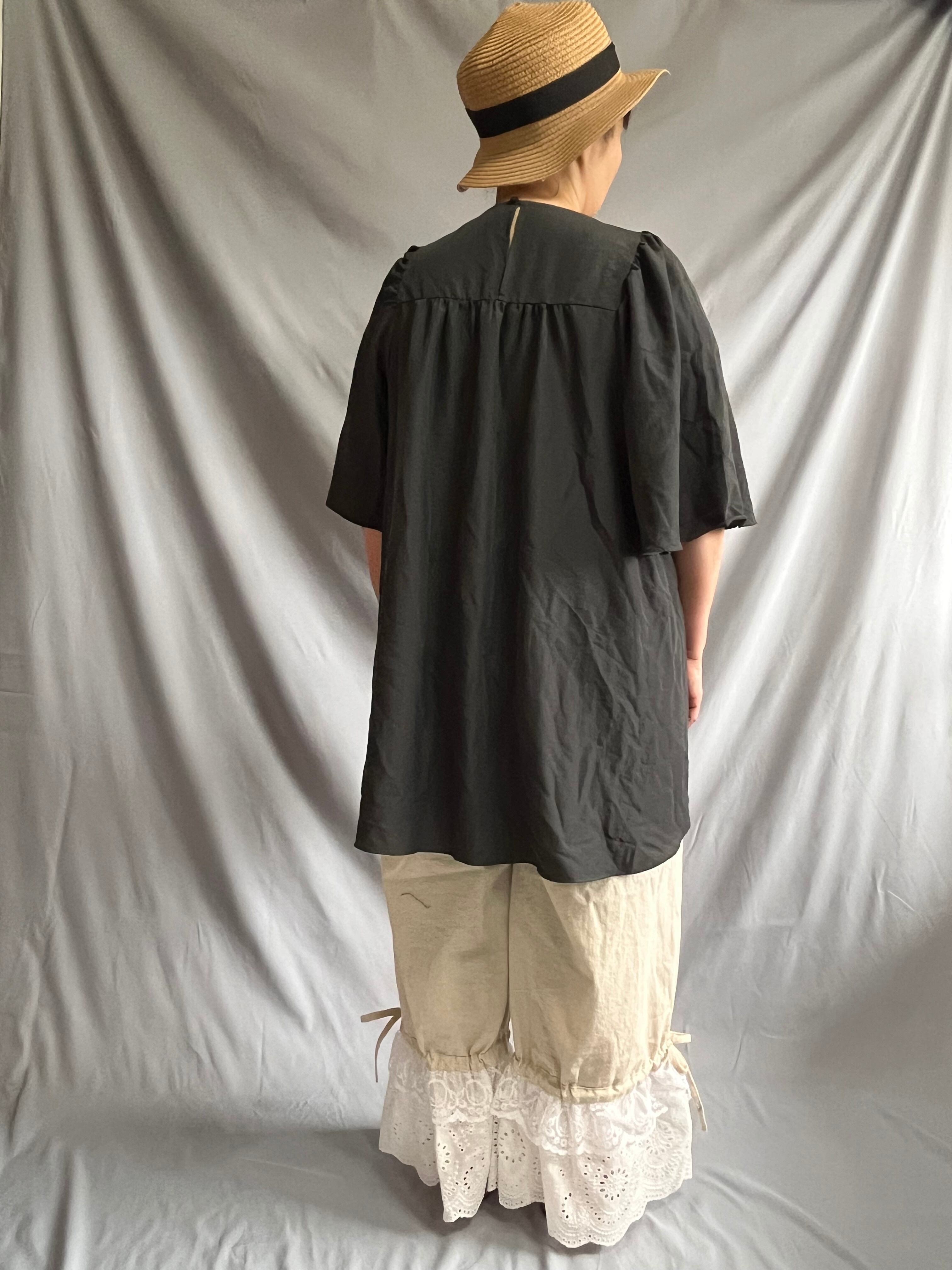 コットンリネンのくったりとした風合いに、裾には存在感たっぷりのアンティークレースを贅沢に使用