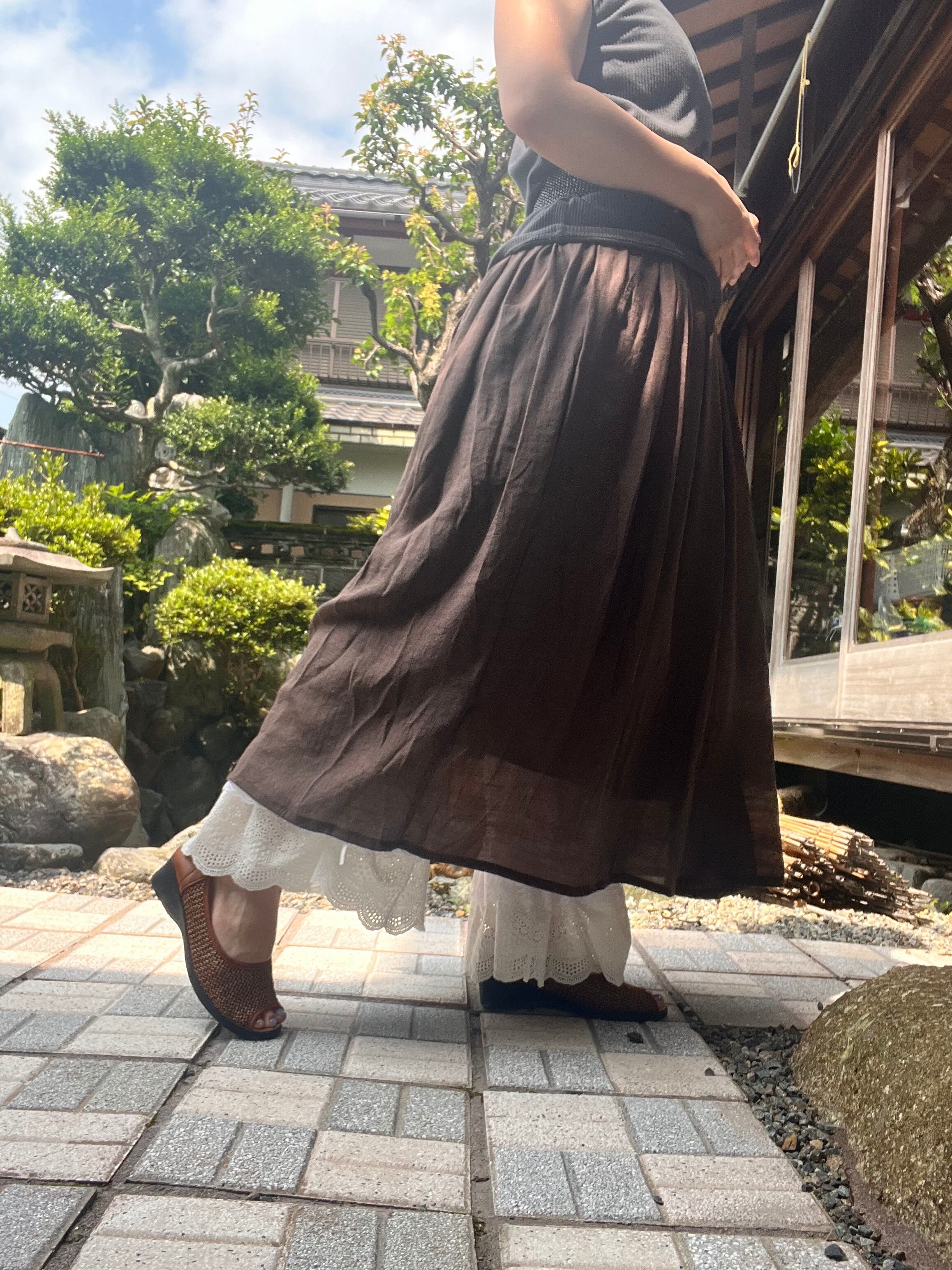 コットンリネンのくったりとした風合いに、裾には存在感たっぷりのアンティークレースを贅沢に使用