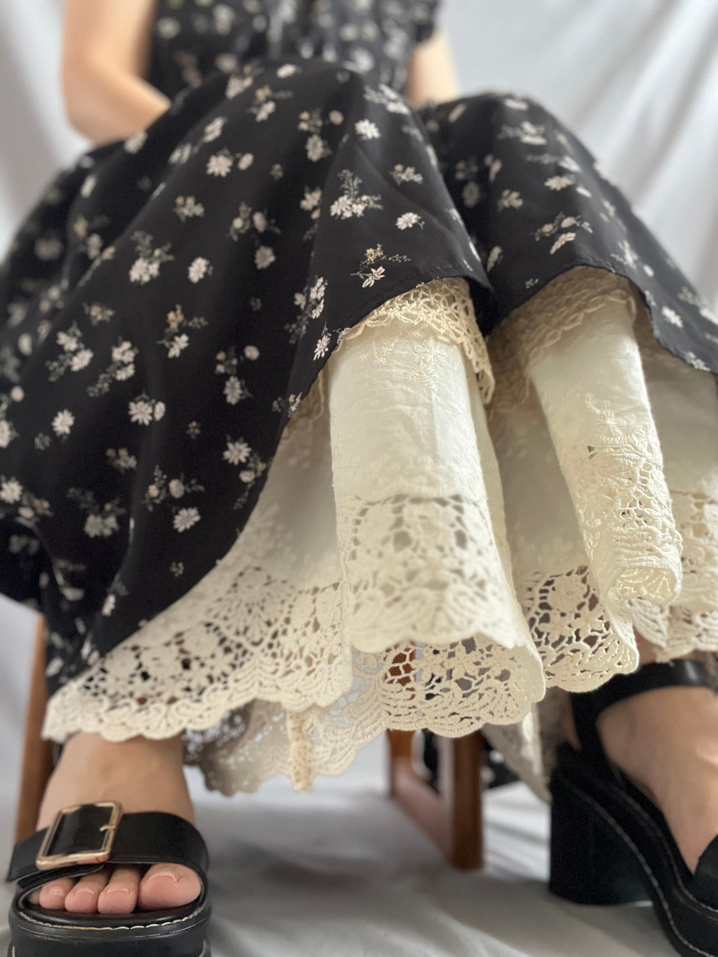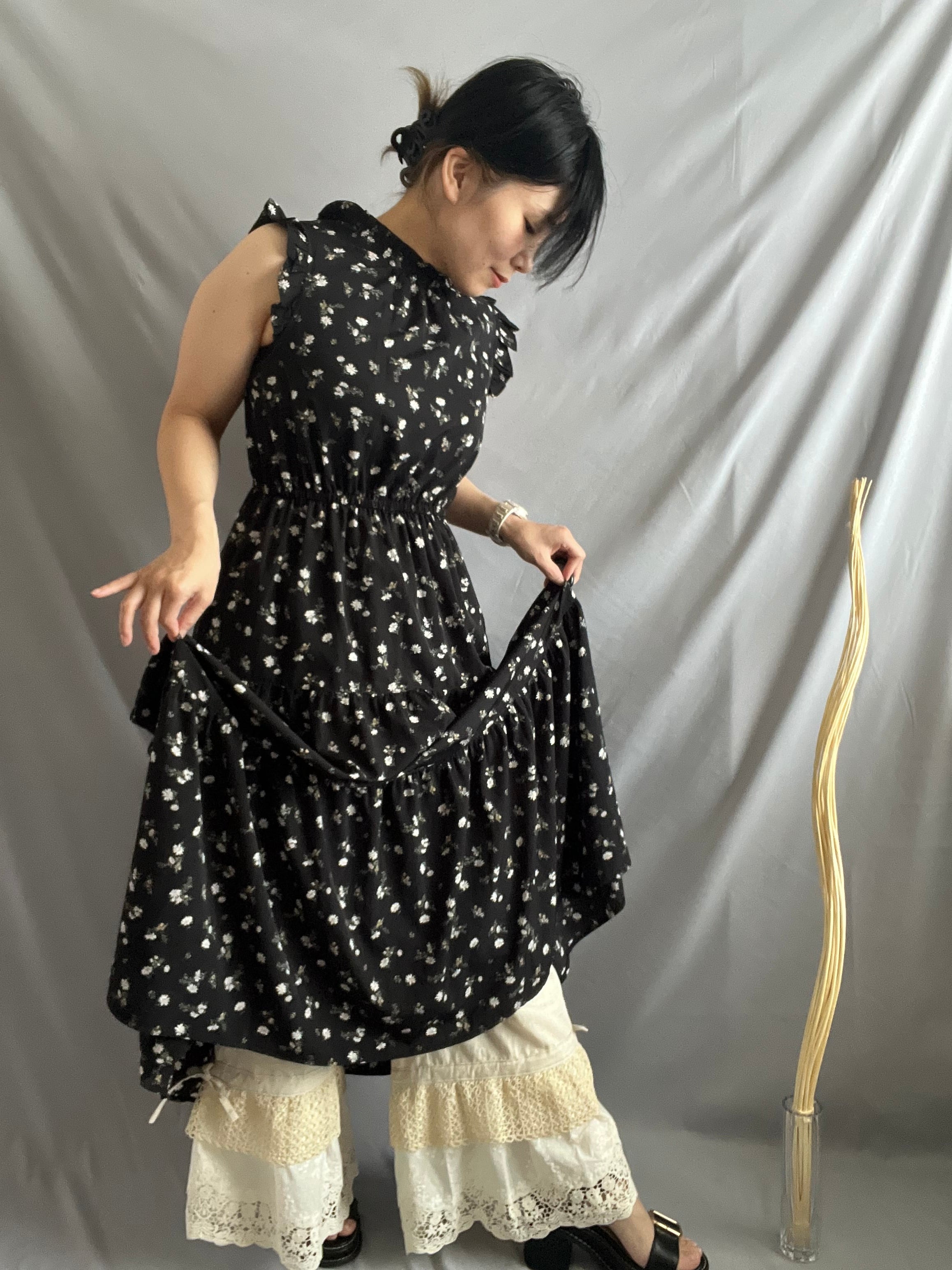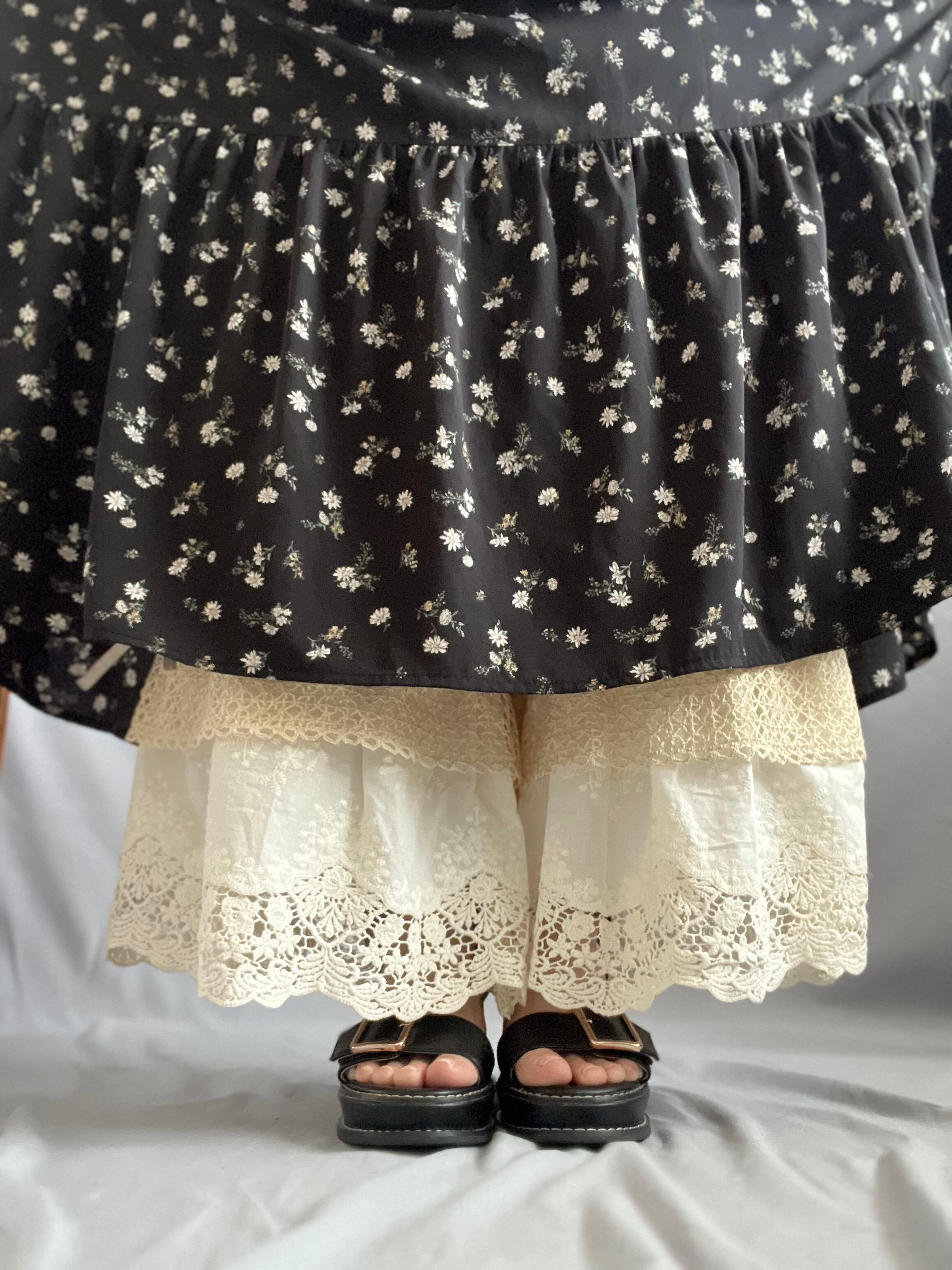 足元で揺れる約20cm幅のレースは、スカートの下から覗かせても、これ一枚でボトムスとして楽しんでもOK!