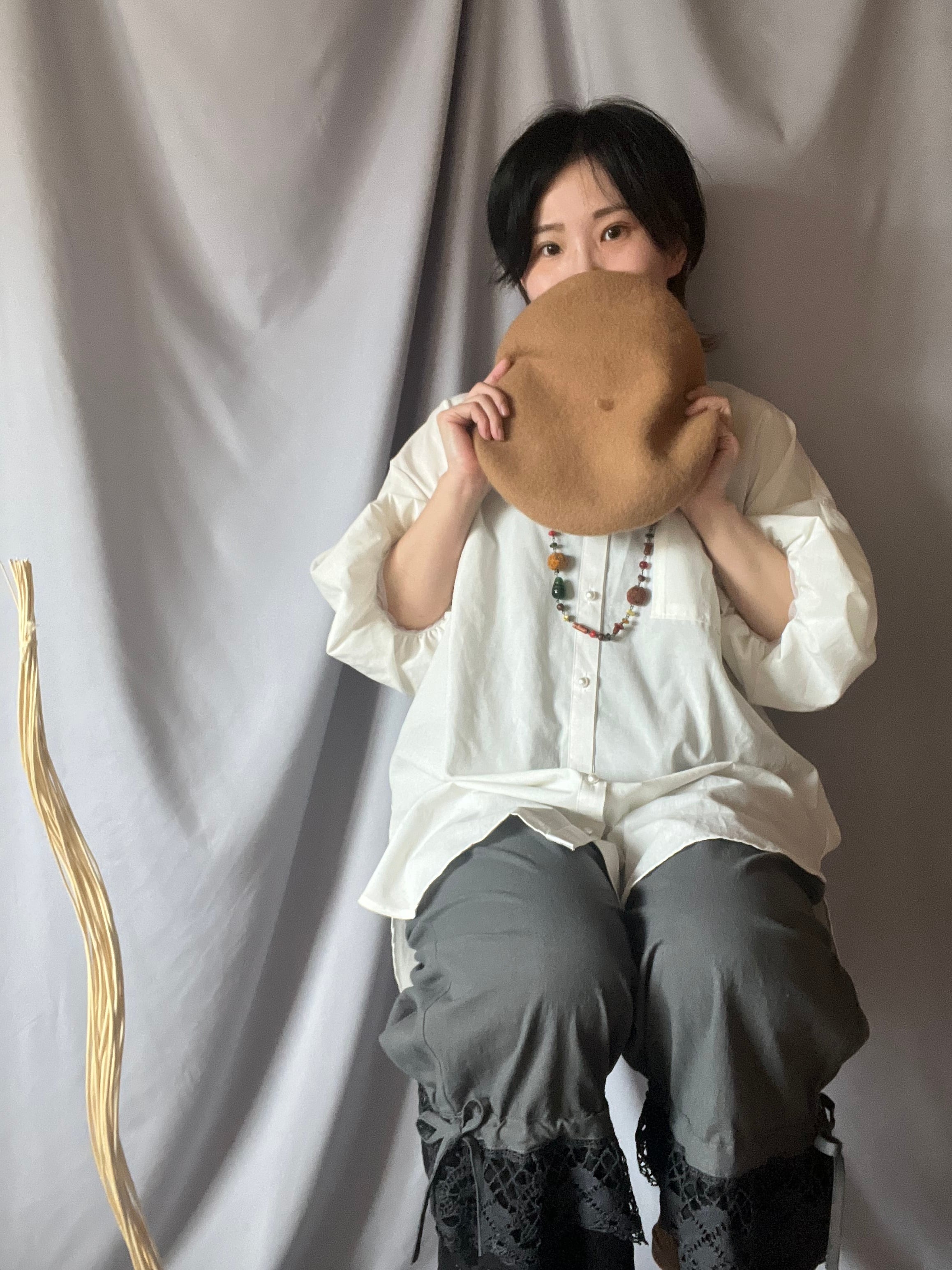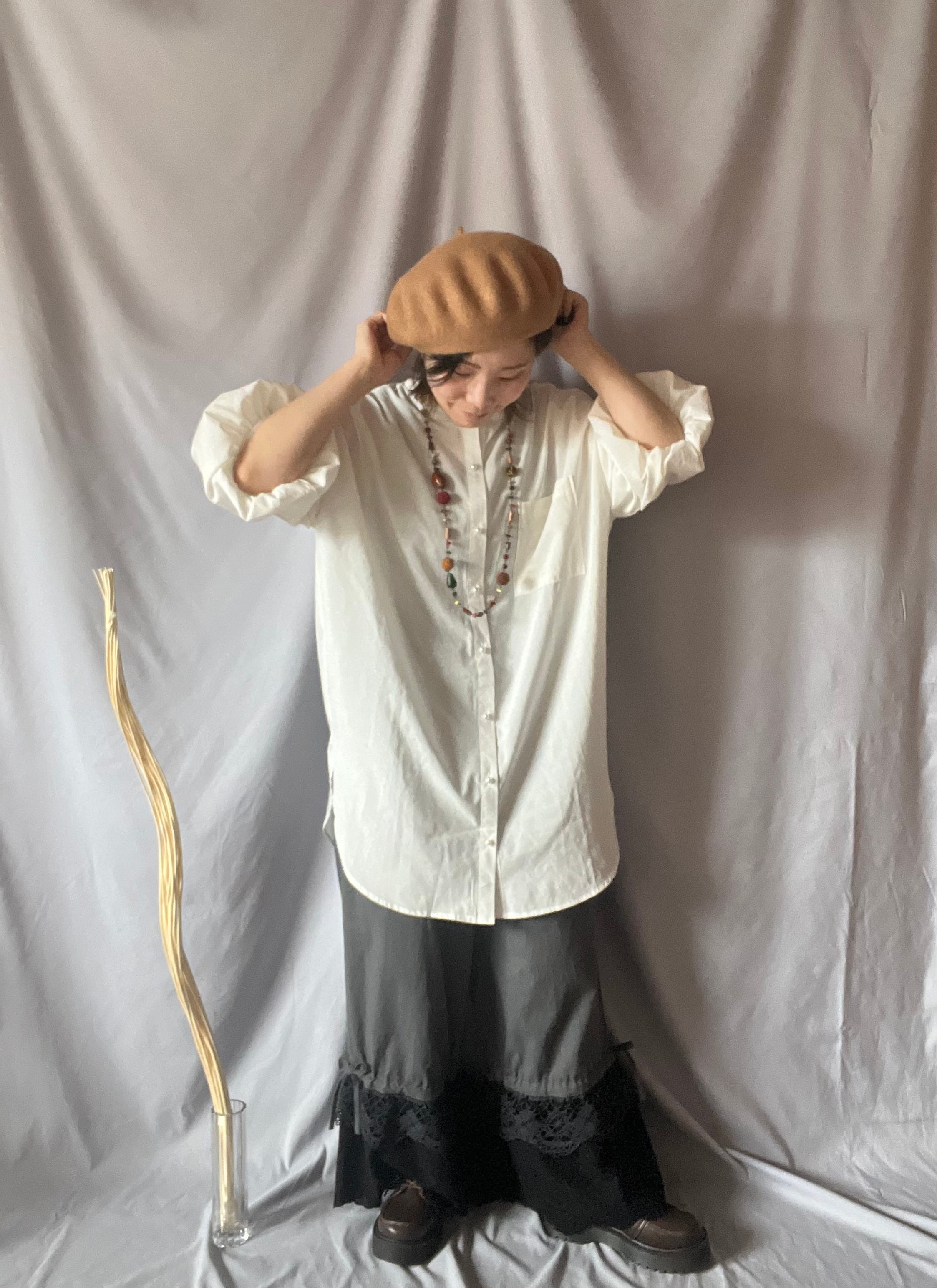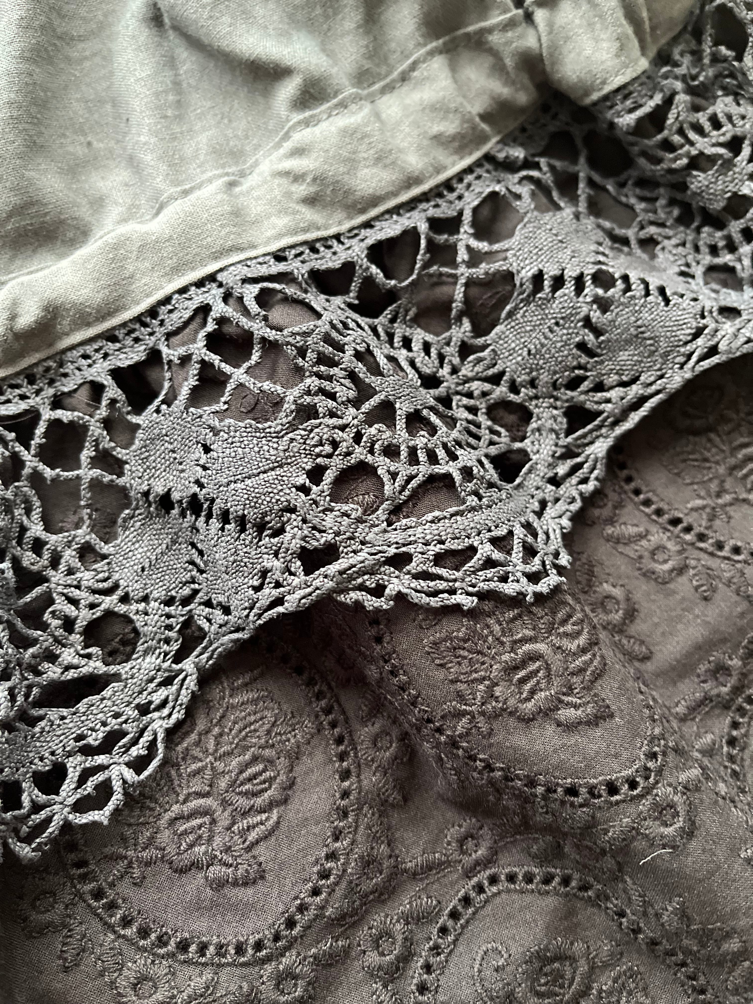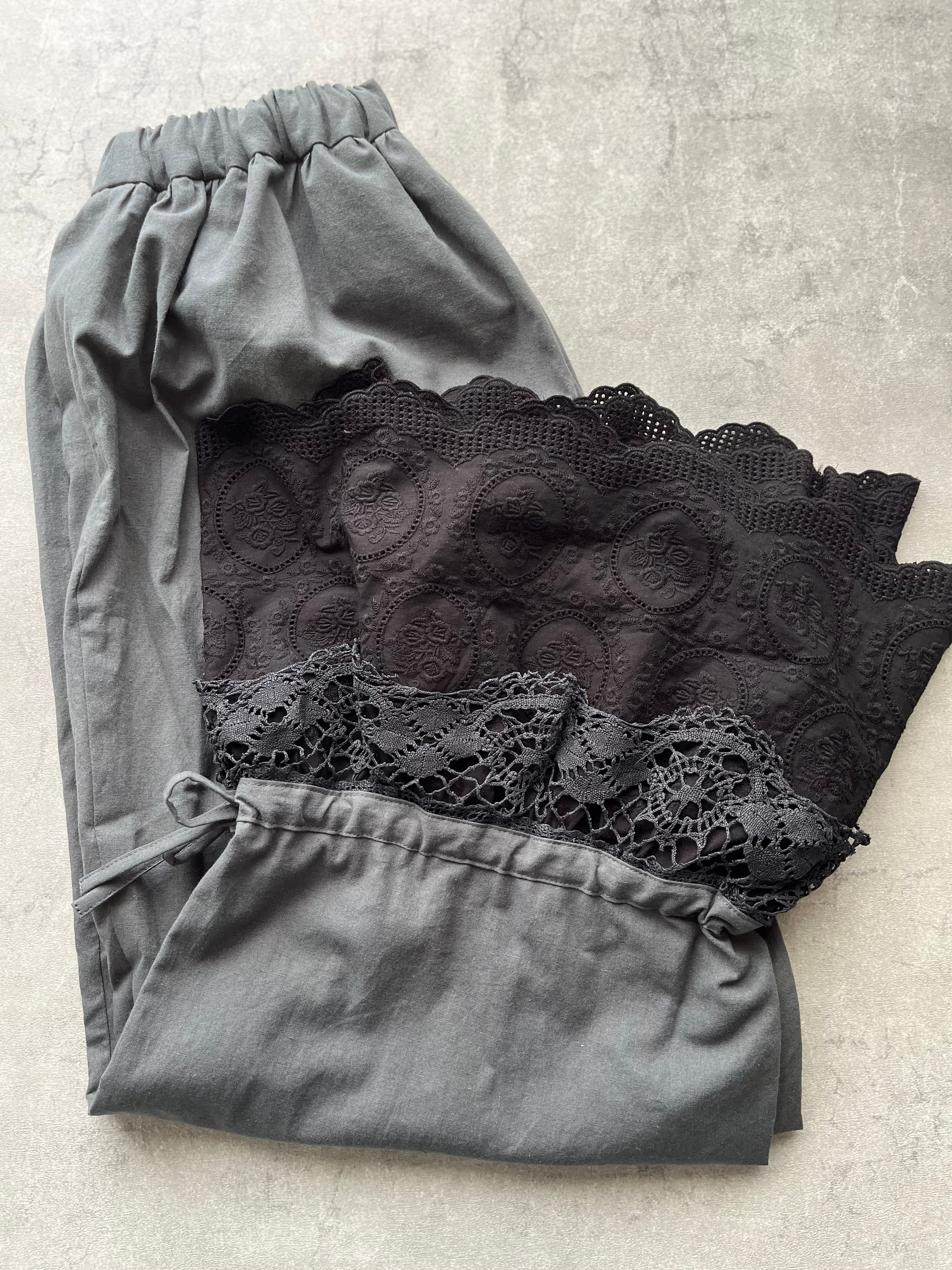 コットンリネンのくったりとした風合いに、裾には存在感たっぷりのアンティークレースを贅沢に使用