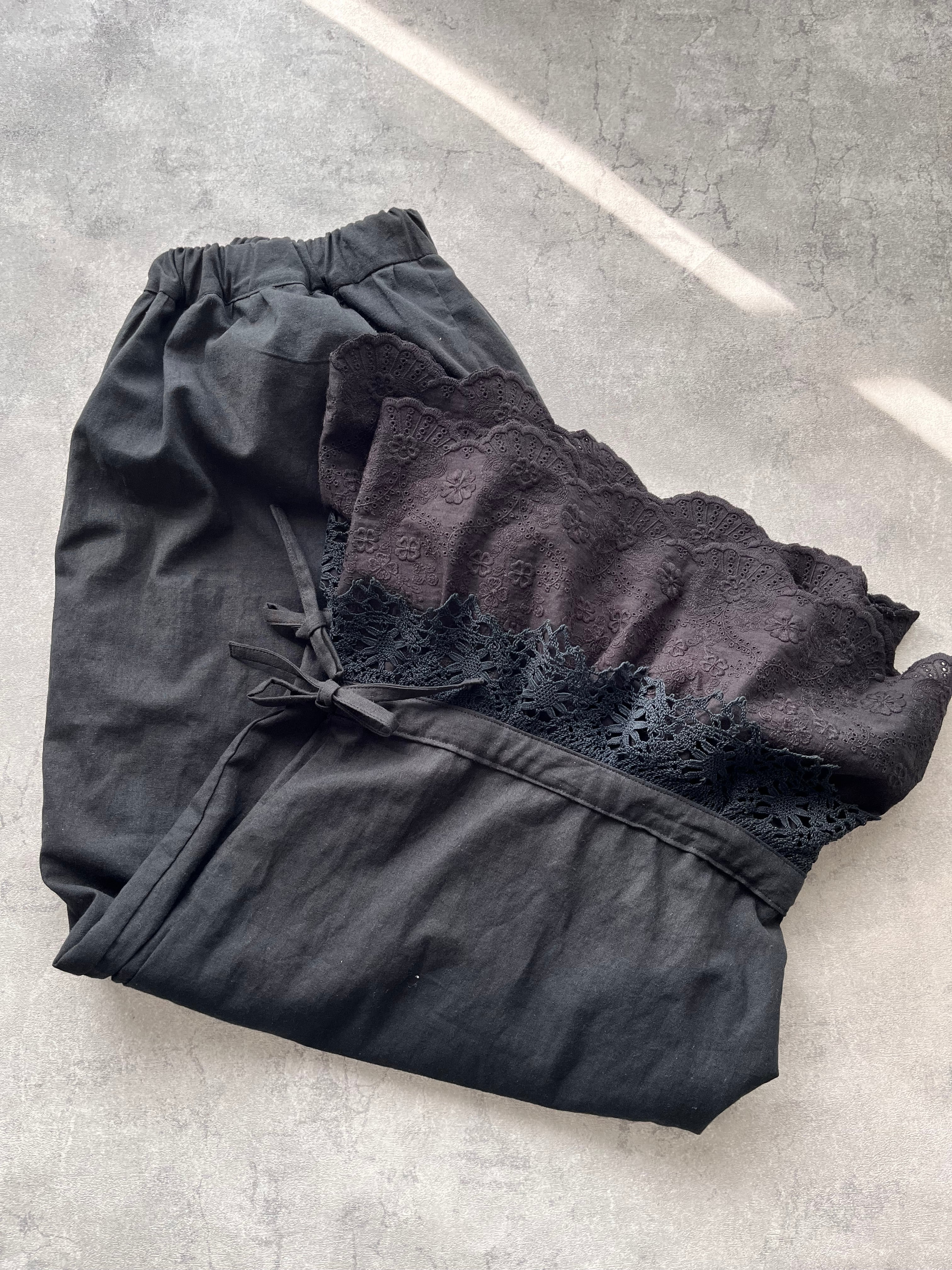 コットンリネンのくったりとした風合いに、裾には存在感たっぷりのアンティークレースを贅沢に使用