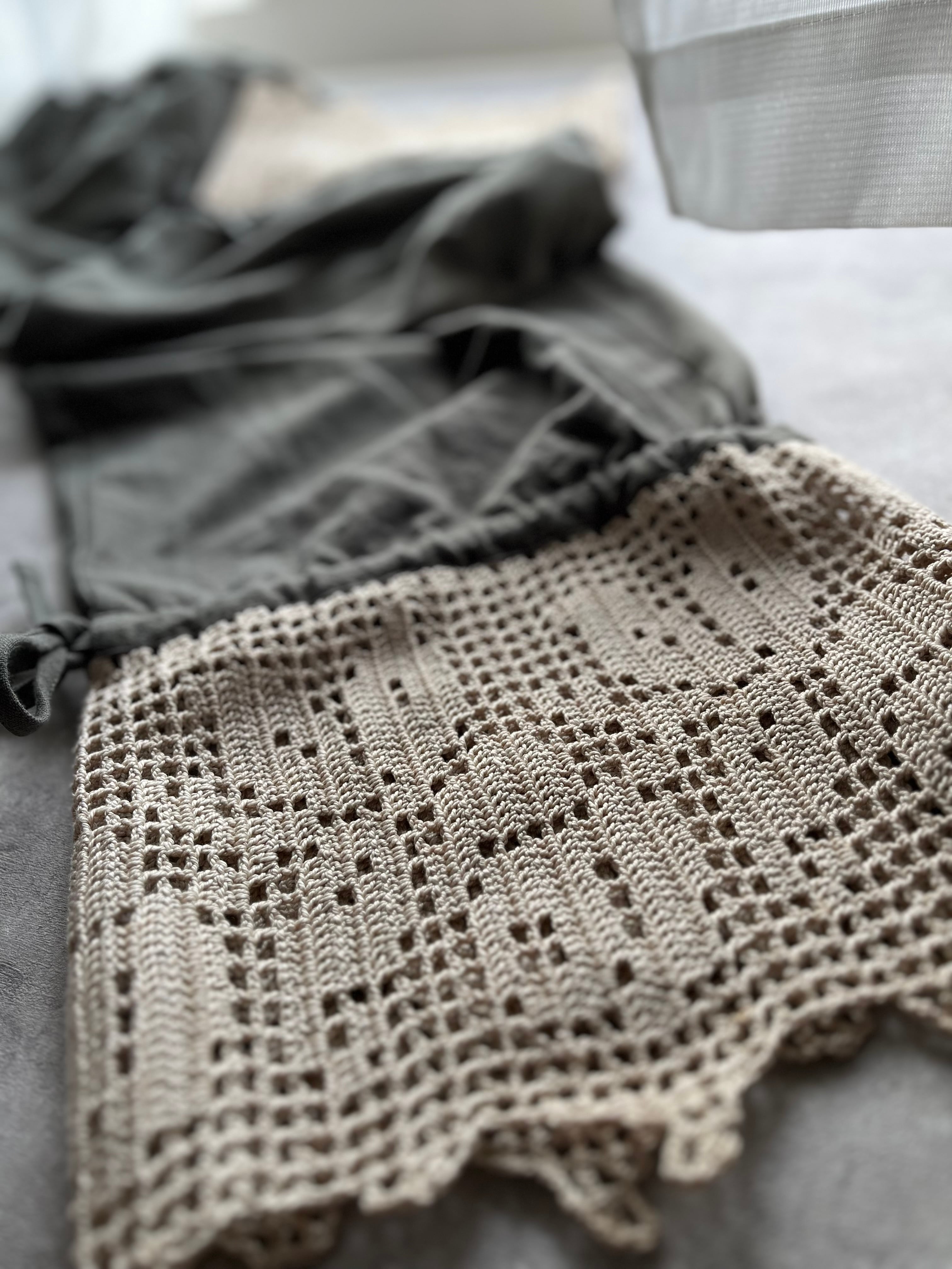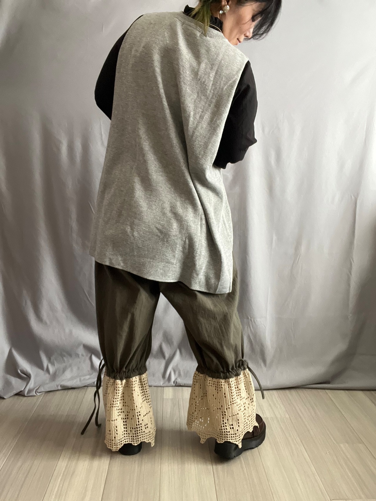 コットンリネンのくったりとした風合いに、裾には存在感たっぷりのアンティークレースを贅沢に使用