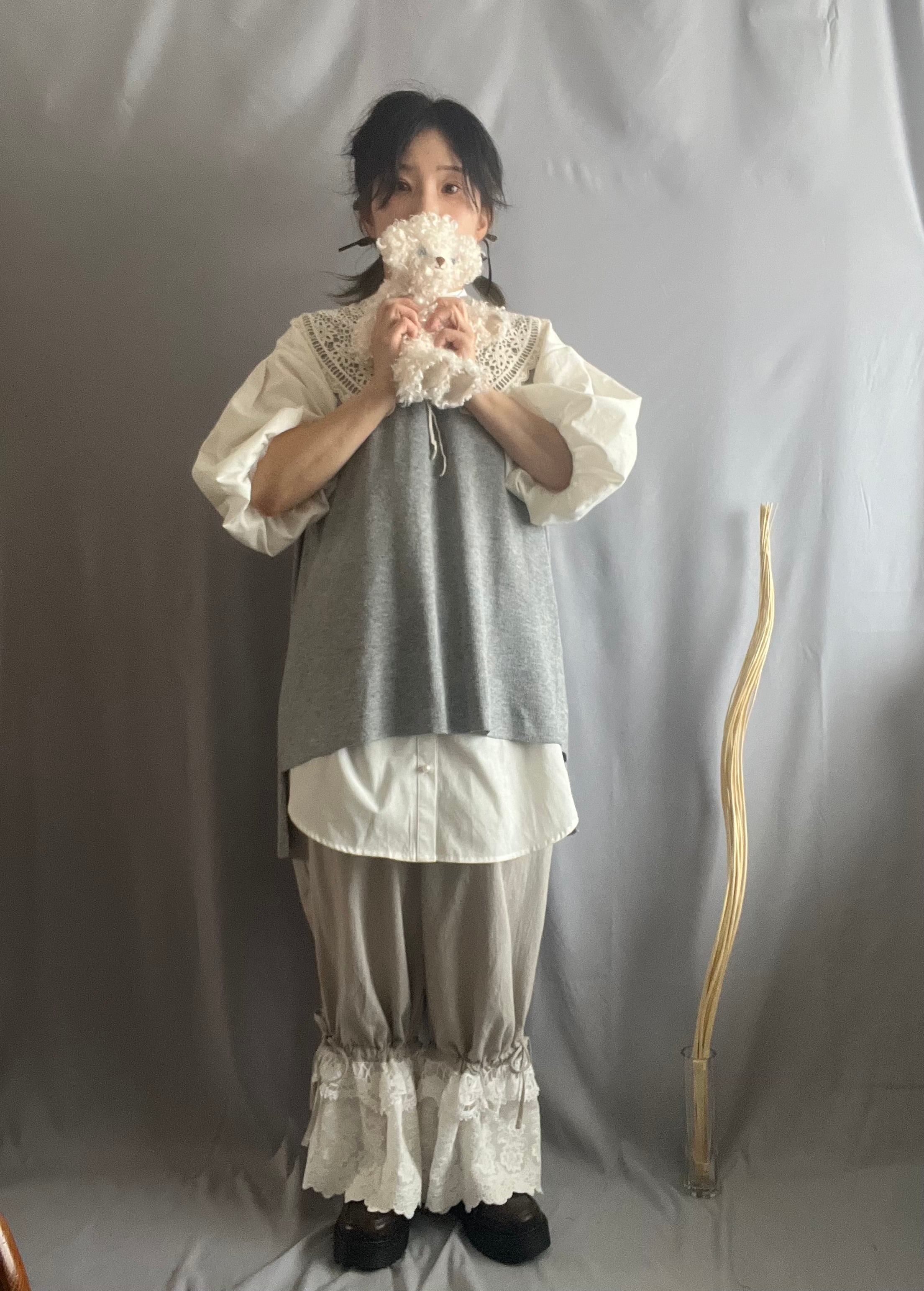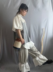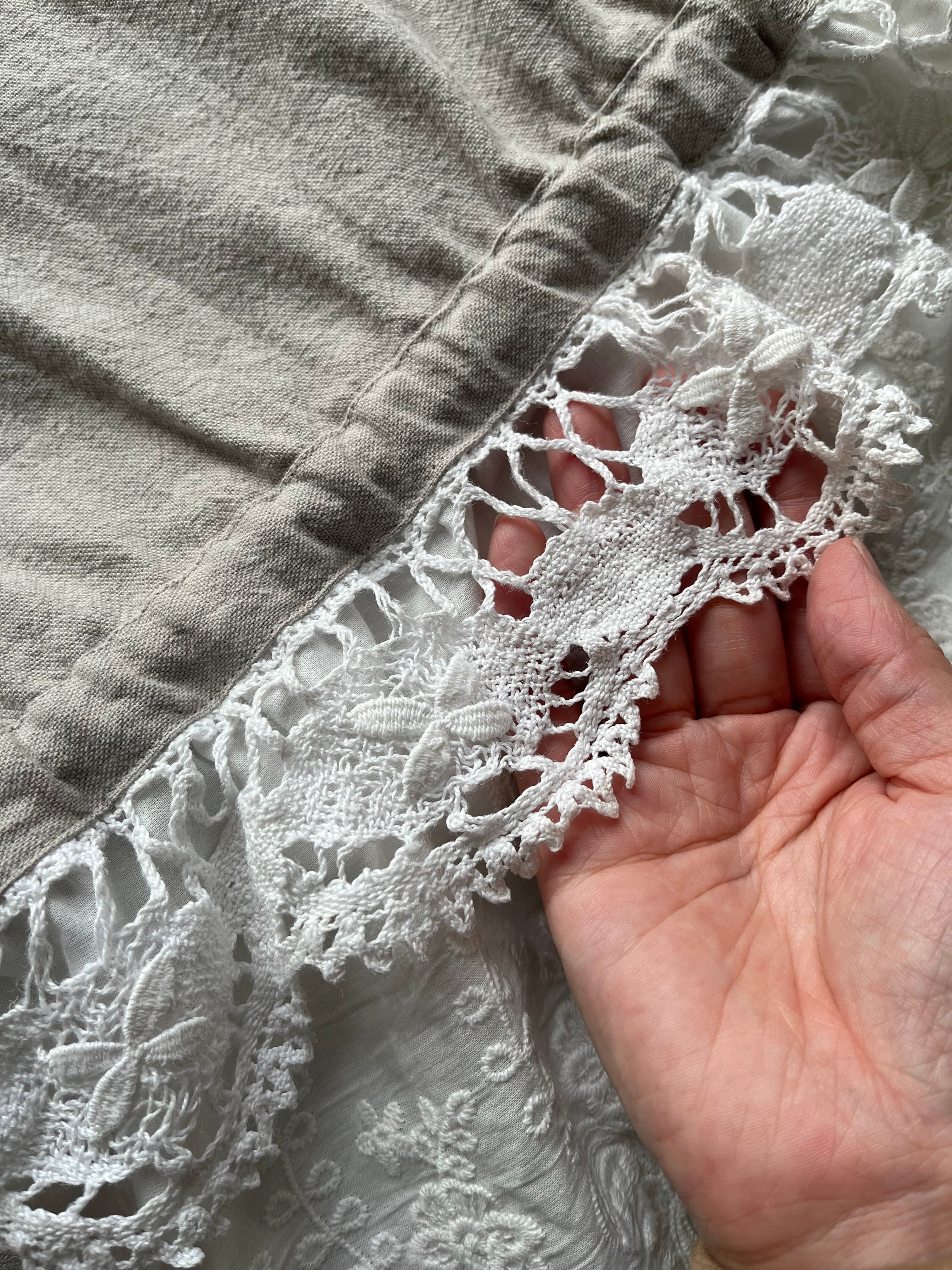 コットンリネンのくったりとした風合いに、裾には存在感たっぷりのアンティークレースを贅沢に使用