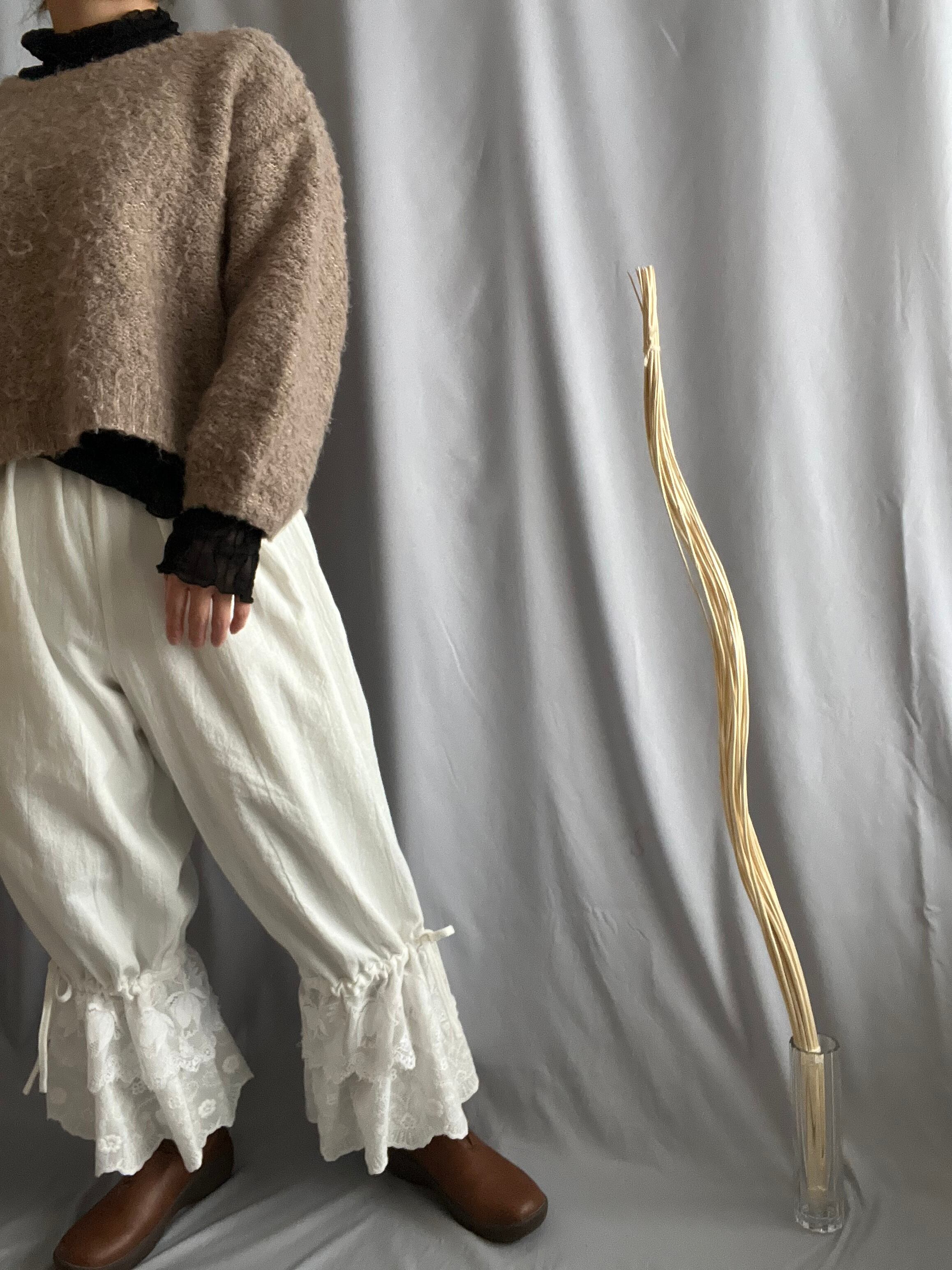 コットンリネンのくったりとした風合いに、裾には存在感たっぷりのアンティークレースを贅沢に使用