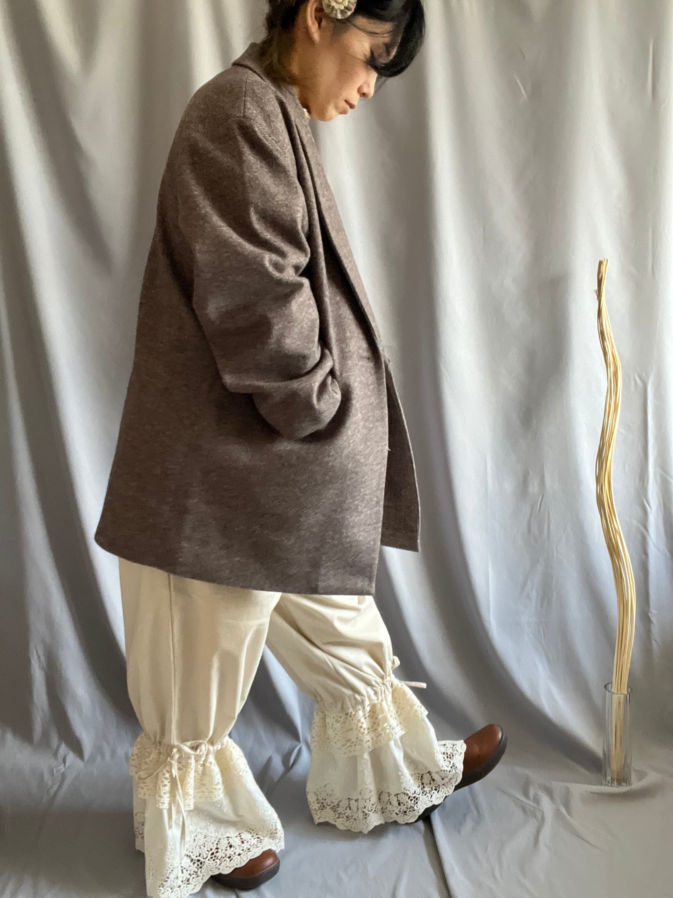 コットンリネンのくったりとした風合いに、裾には存在感たっぷりのアンティークレースを贅沢に使用
