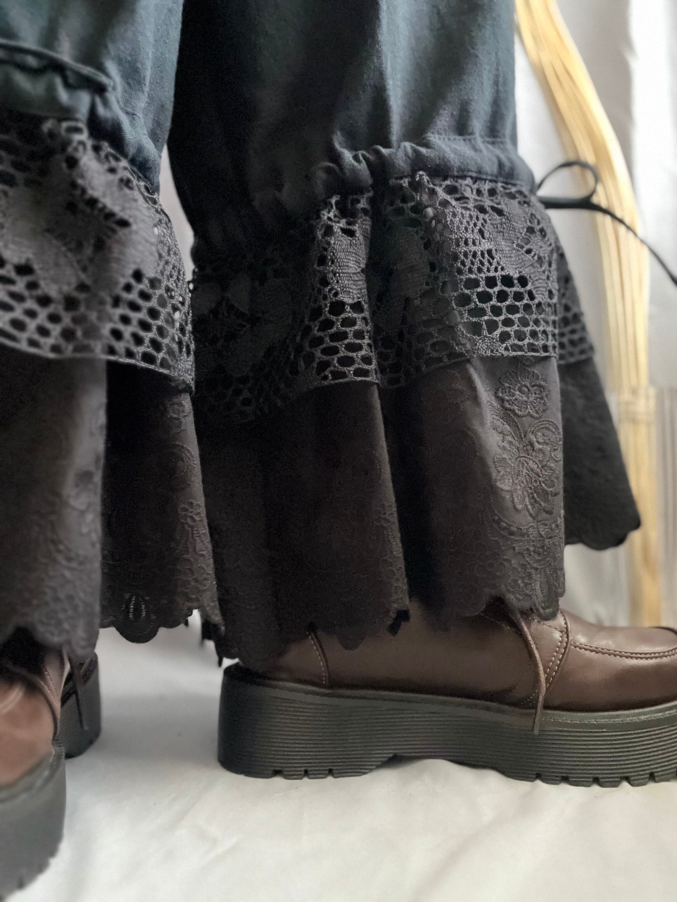 足元で揺れる約20cm幅のレースは、スカートの下から覗かせても、これ一枚でボトムスとして楽しんでもOK!