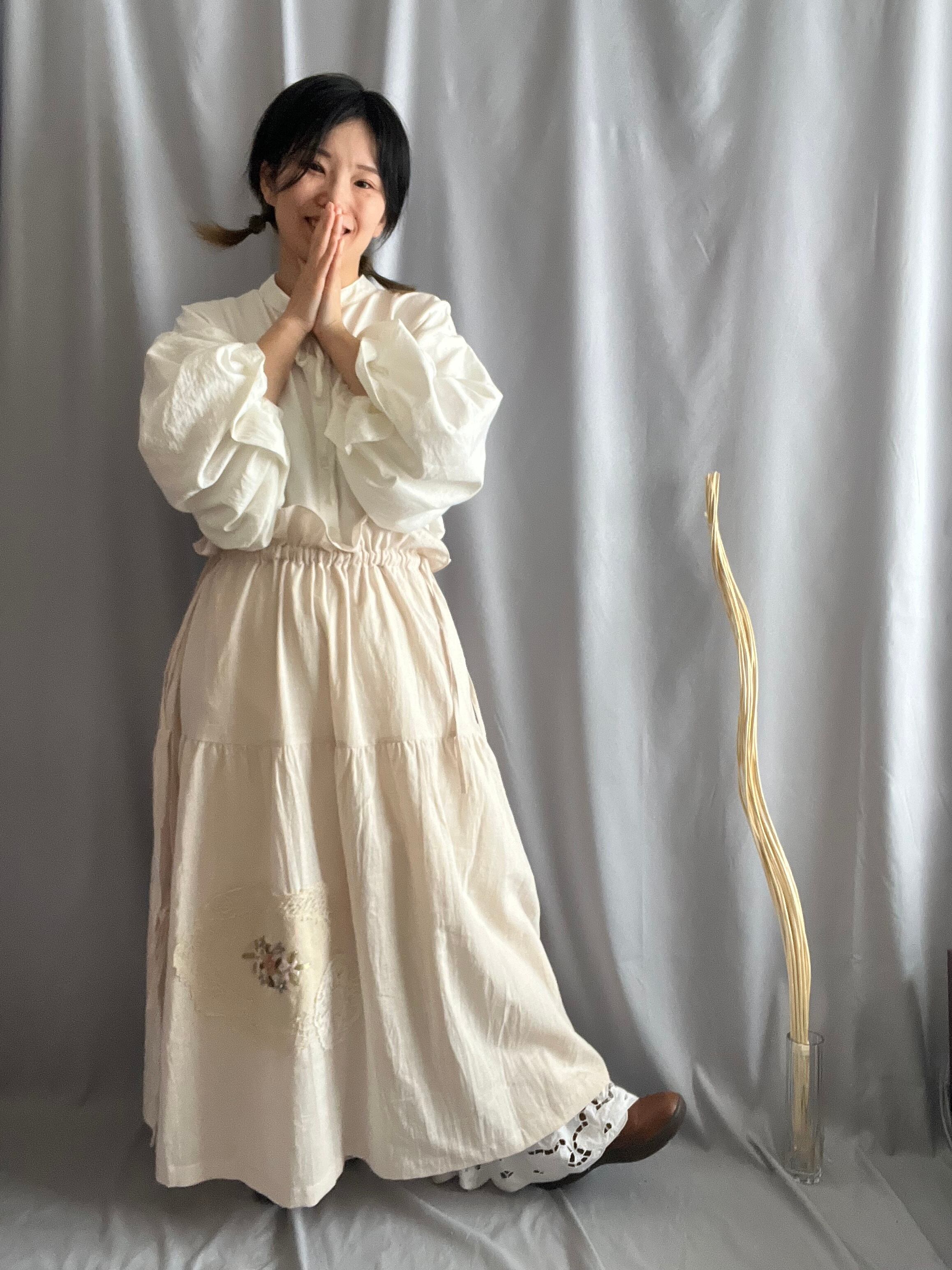 軽やかなコットン生地で仕立てた、ふんわりとした印象のスカートです。