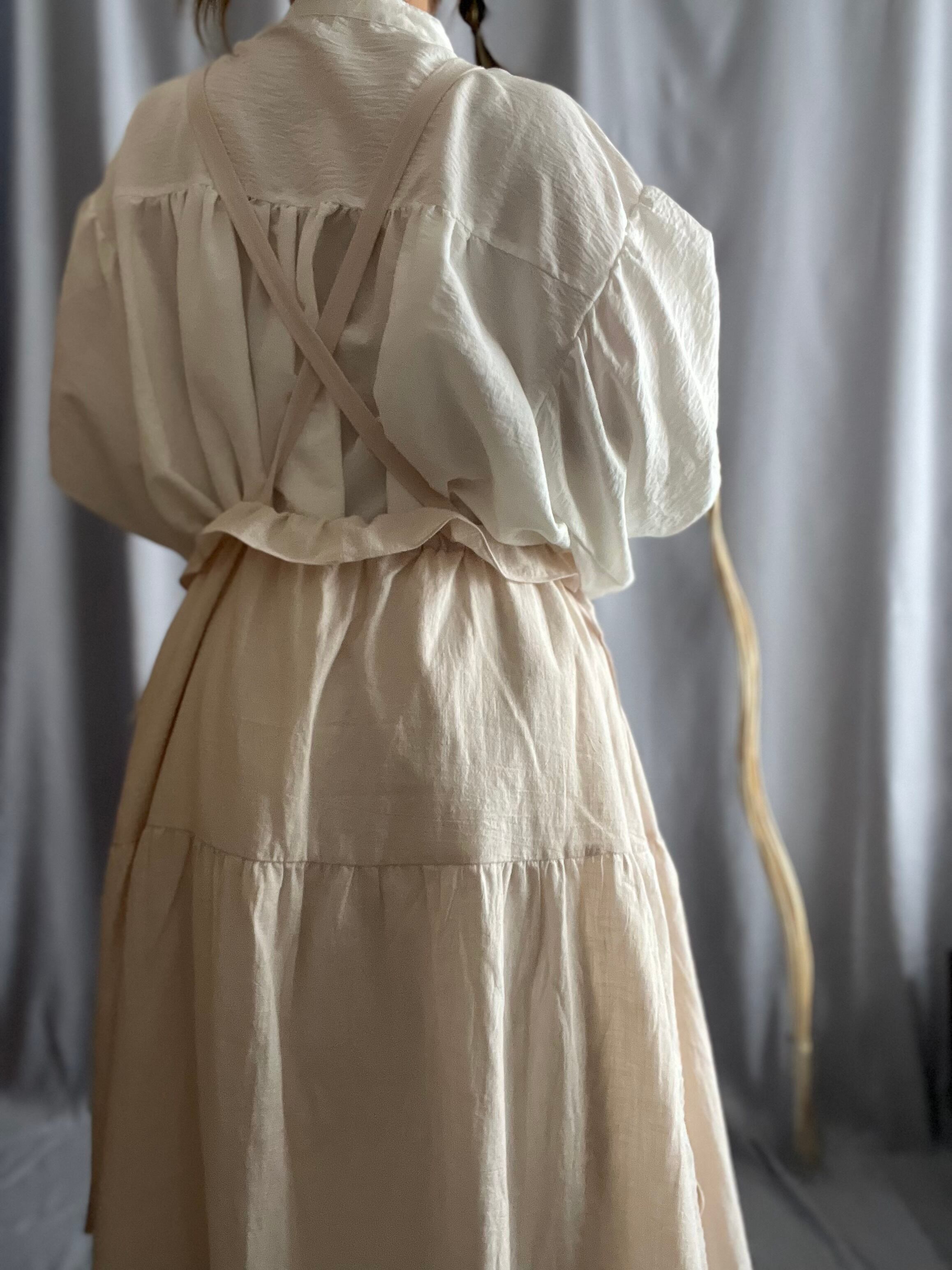 No.57 〈肩紐付き〉サイドリボンスカート/ナチュラル