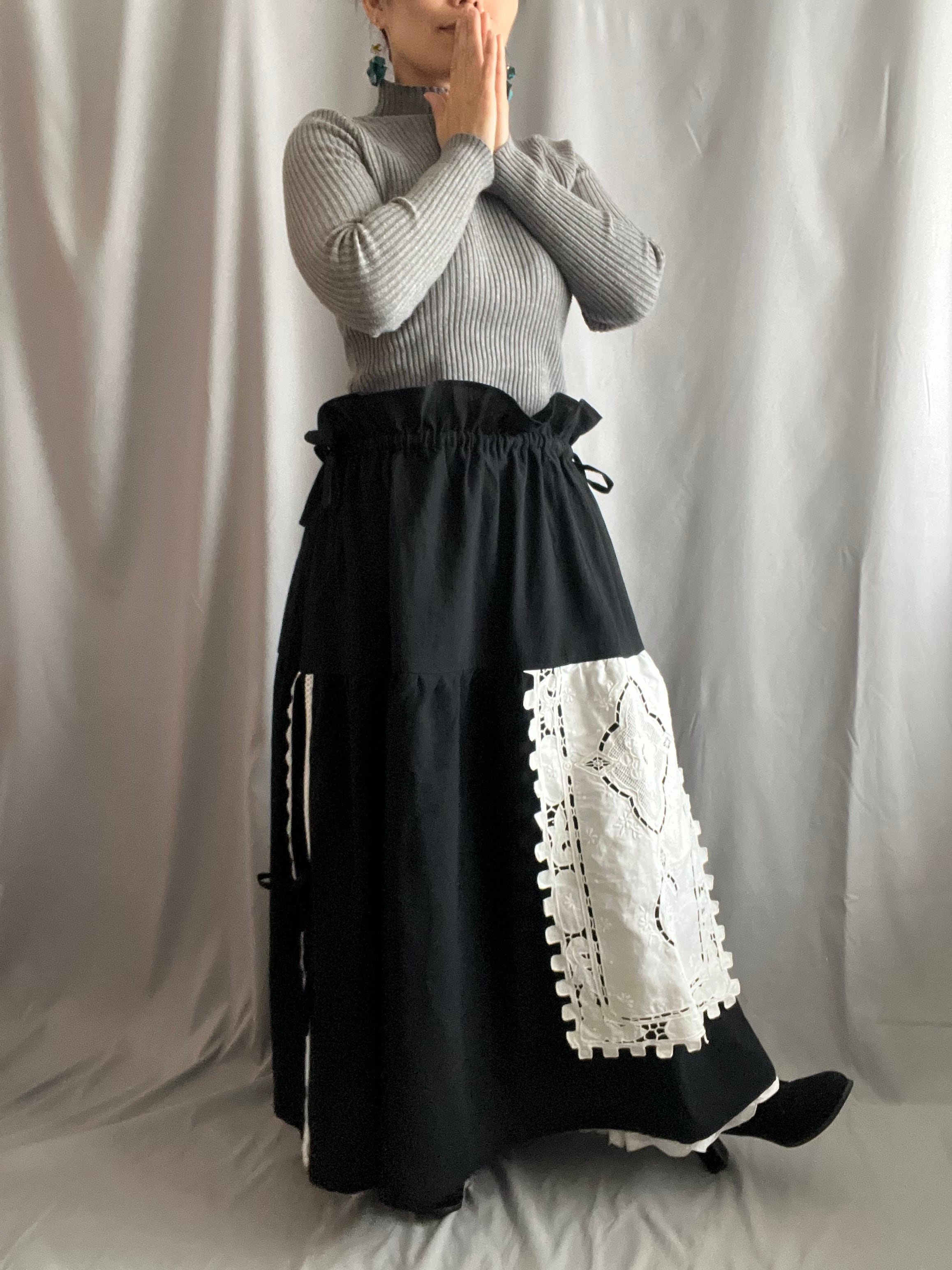 サイドリボン付きスカート/ブラック