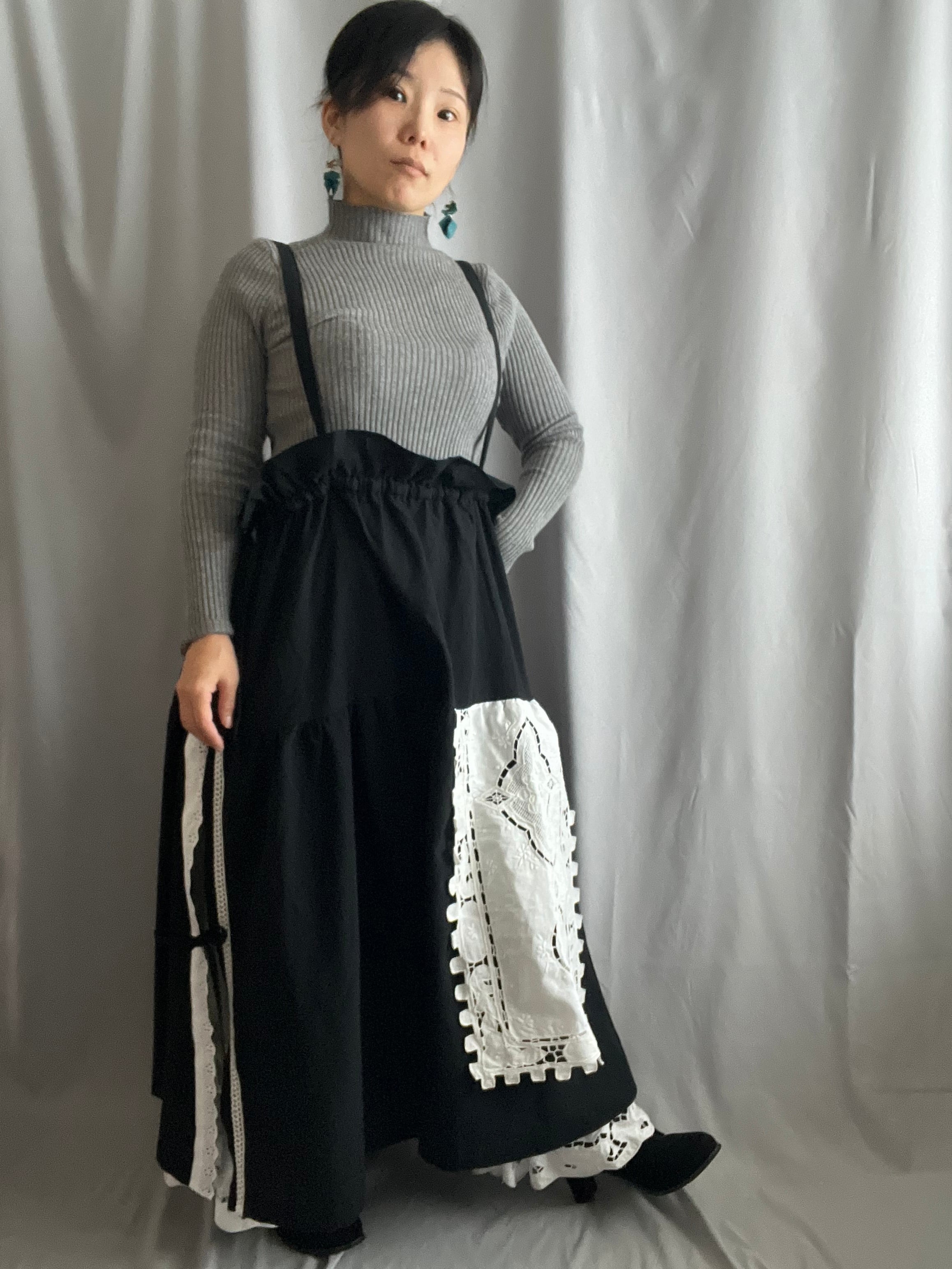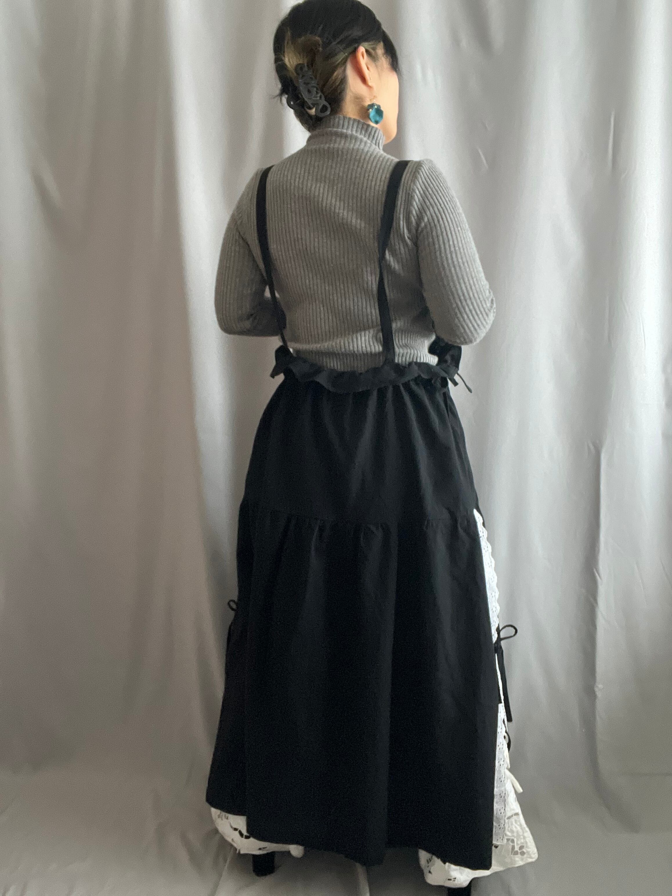 No.59 〈肩紐付き〉サイドリボンスカート/ブラック