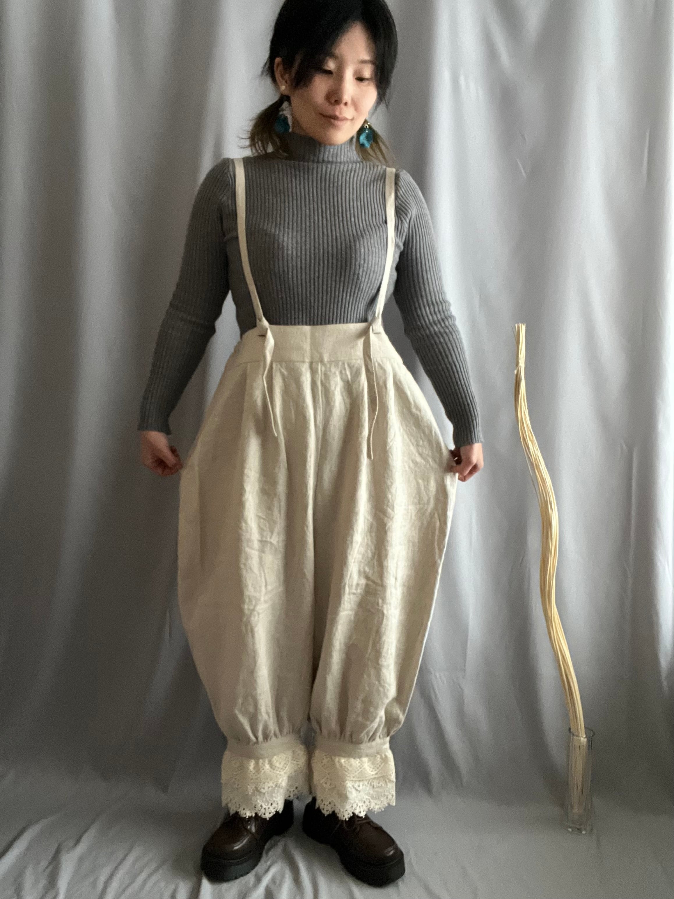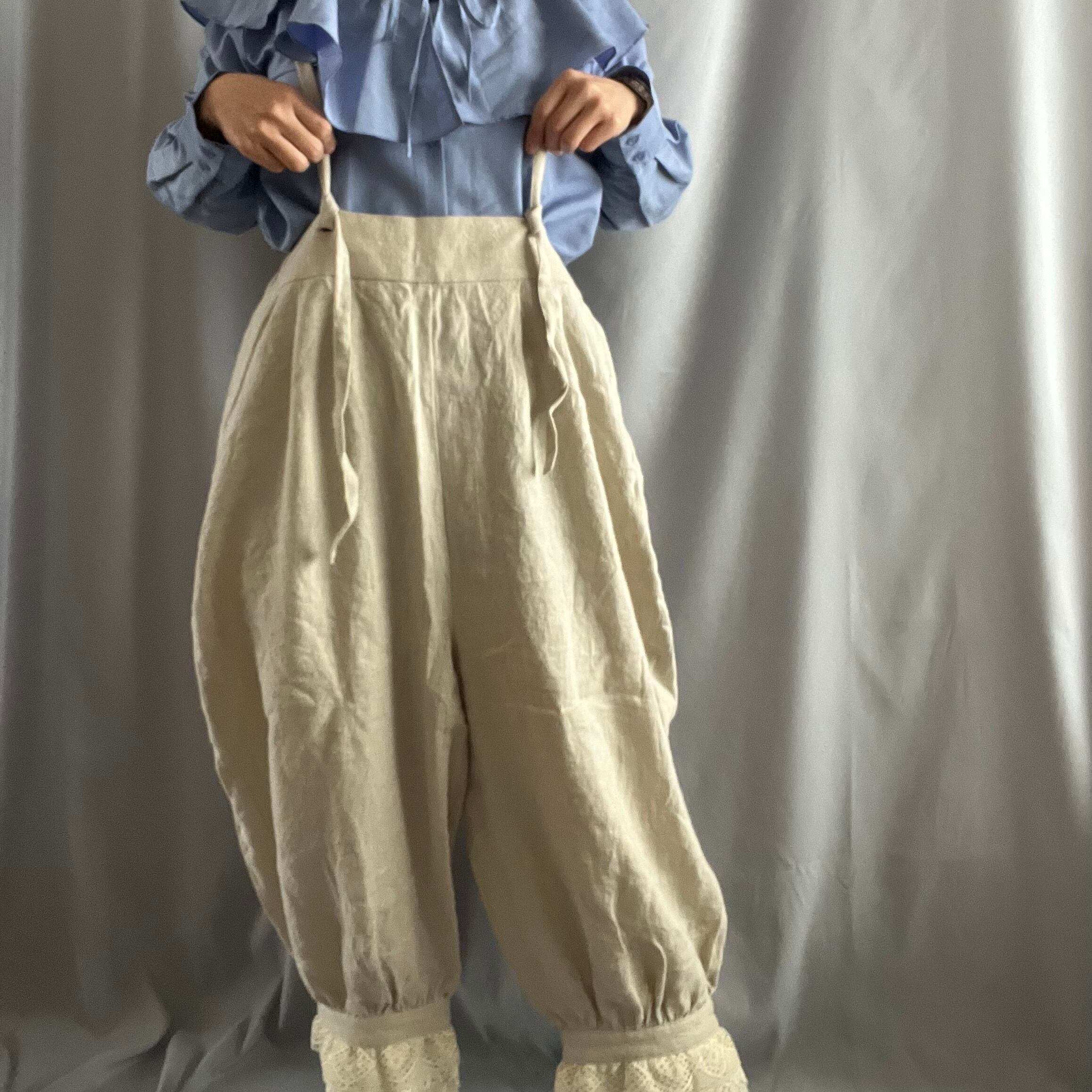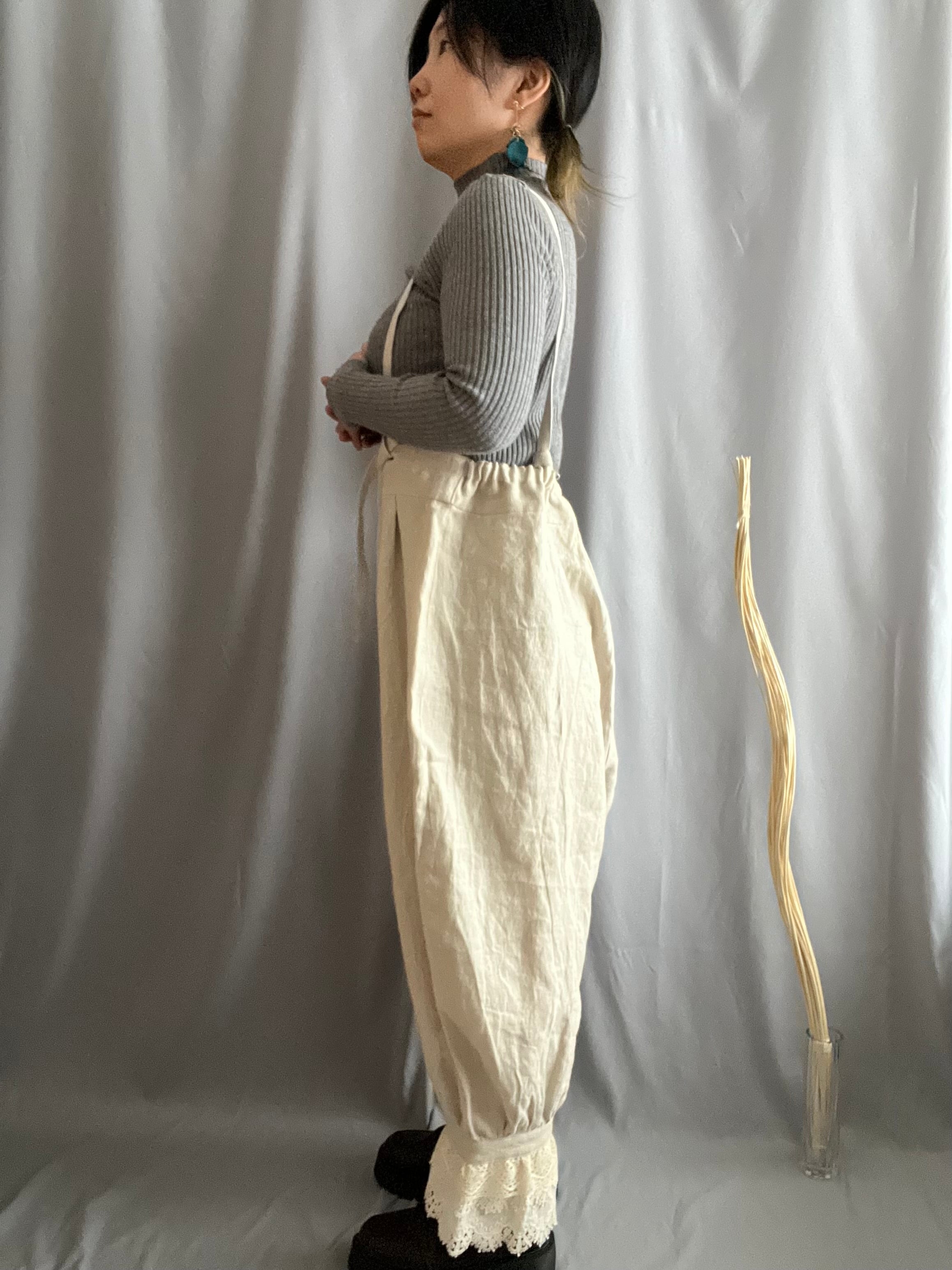 肩紐付きドロワーズパンツ(きなり)