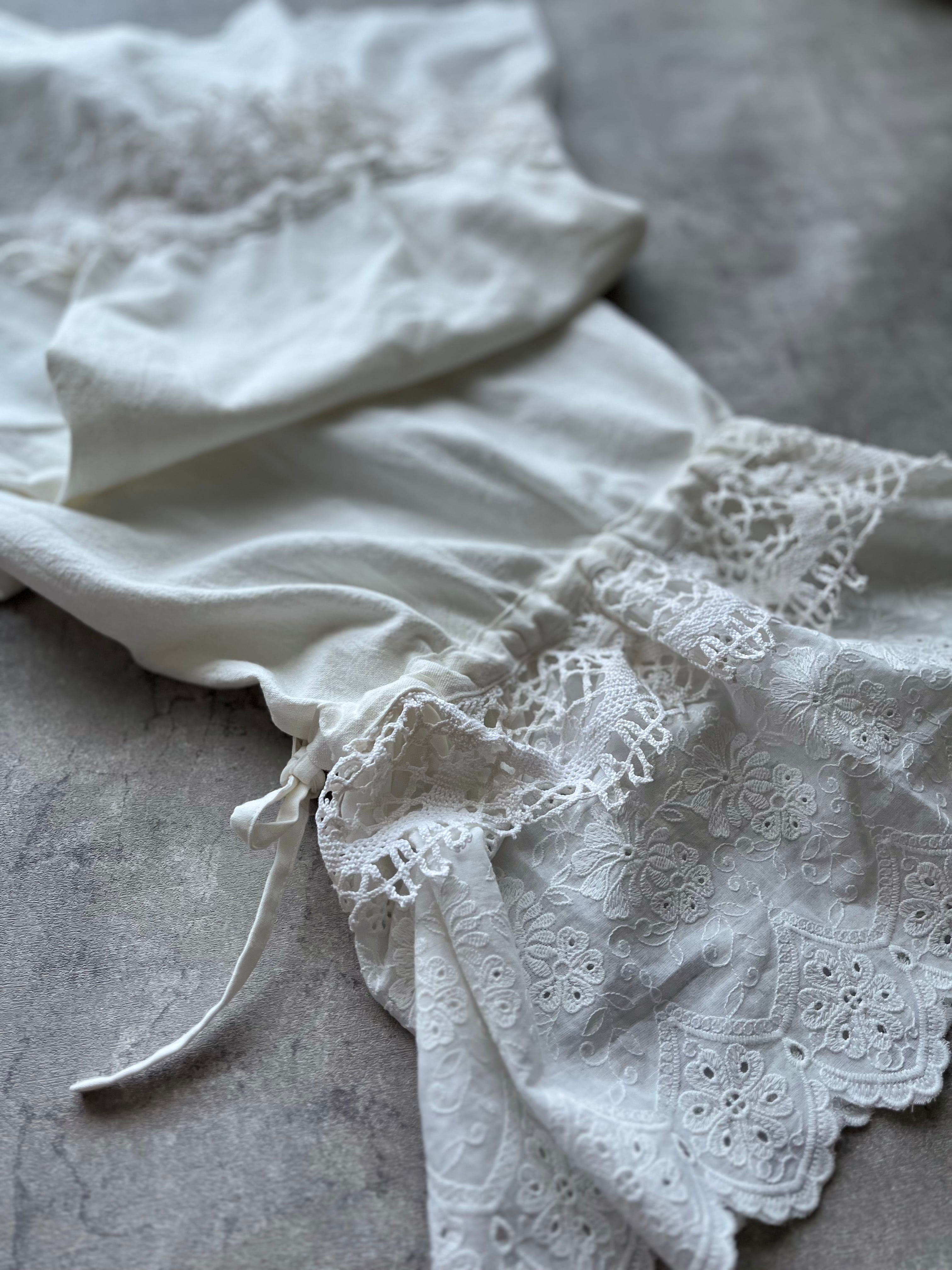 コットンリネンのくったりとした風合いに、裾には存在感たっぷりのアンティークレースを贅沢に使用