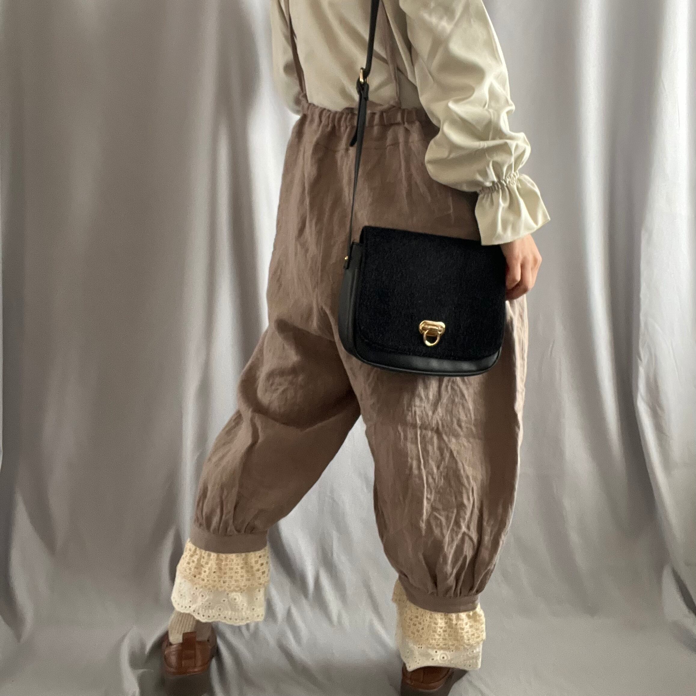 肩紐付きドロワーズパンツ(ブラウン)