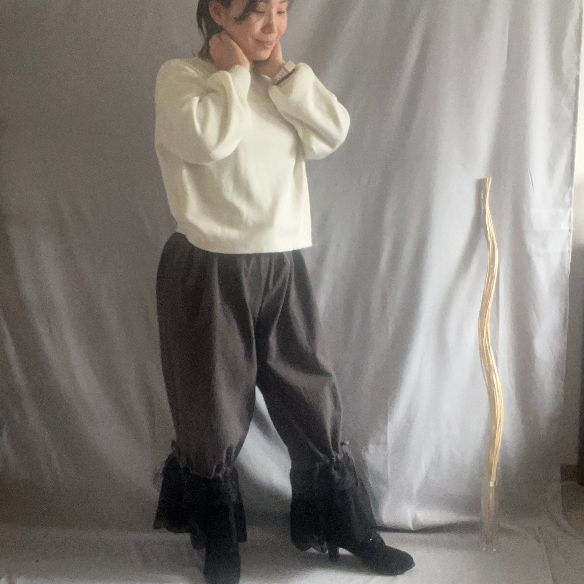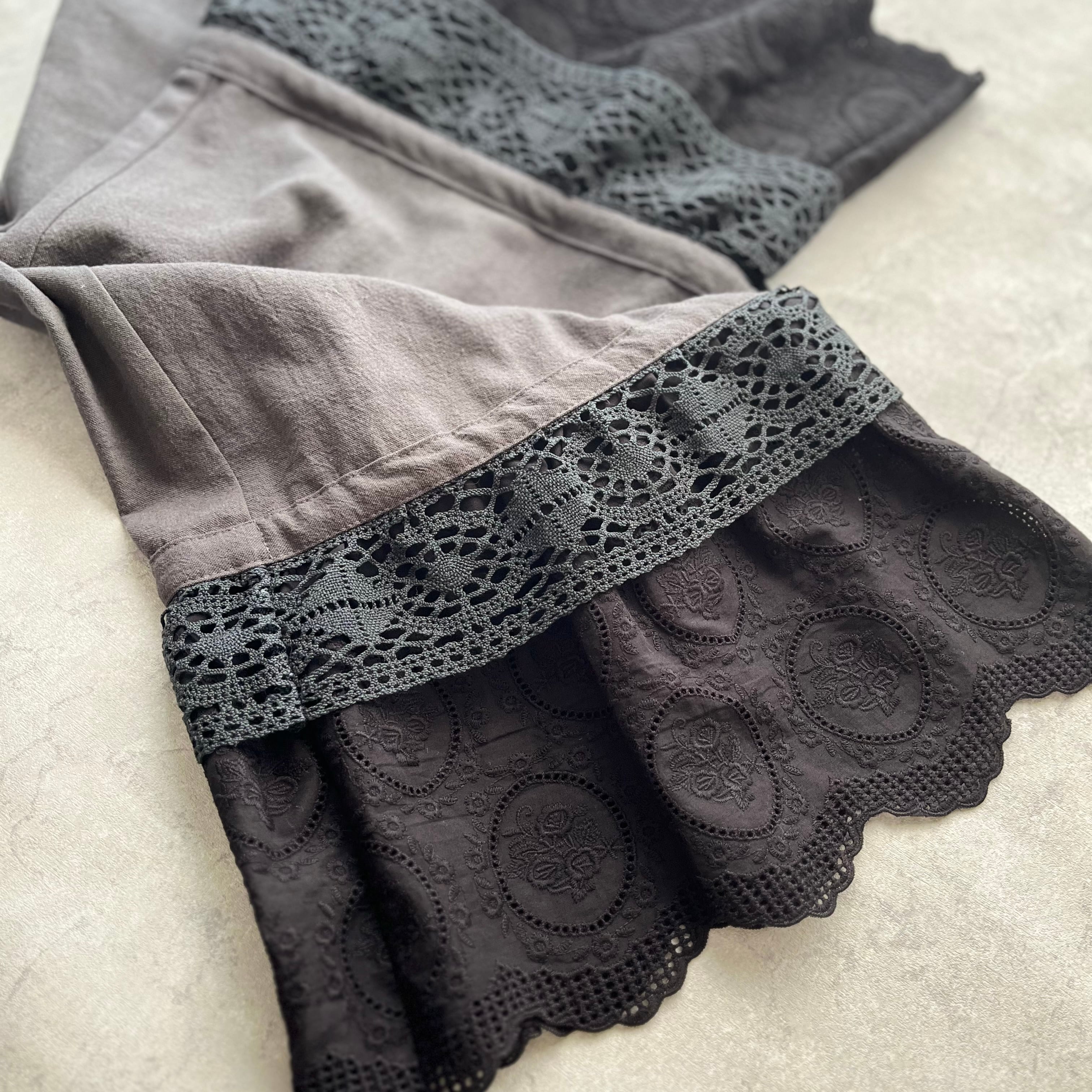 コットンリネンのくったりとした風合いに、裾には存在感たっぷりのアンティークレースを贅沢に使用