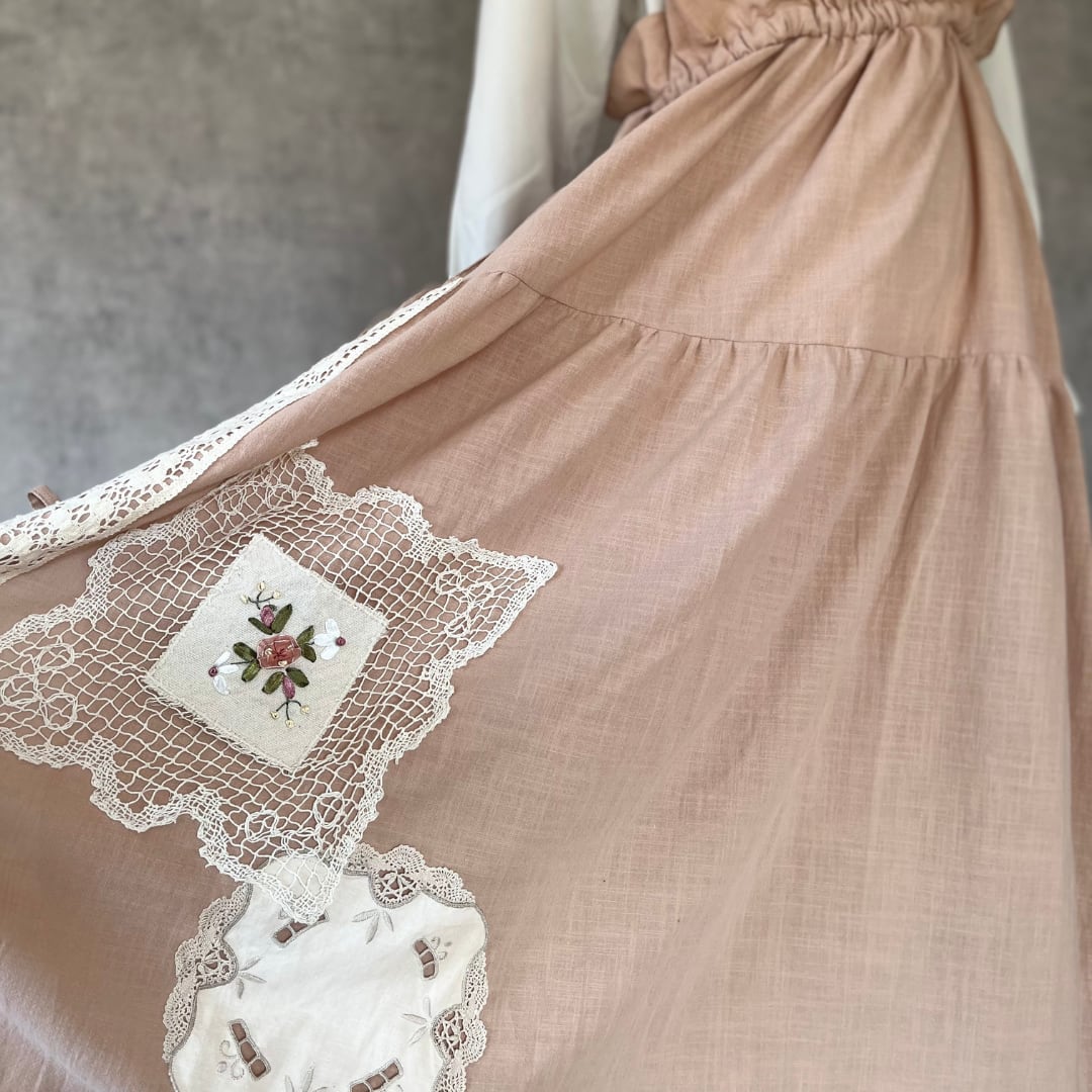 動くたびに裾からのぞくレースが、やわらかな女性らしさを引き立てます。