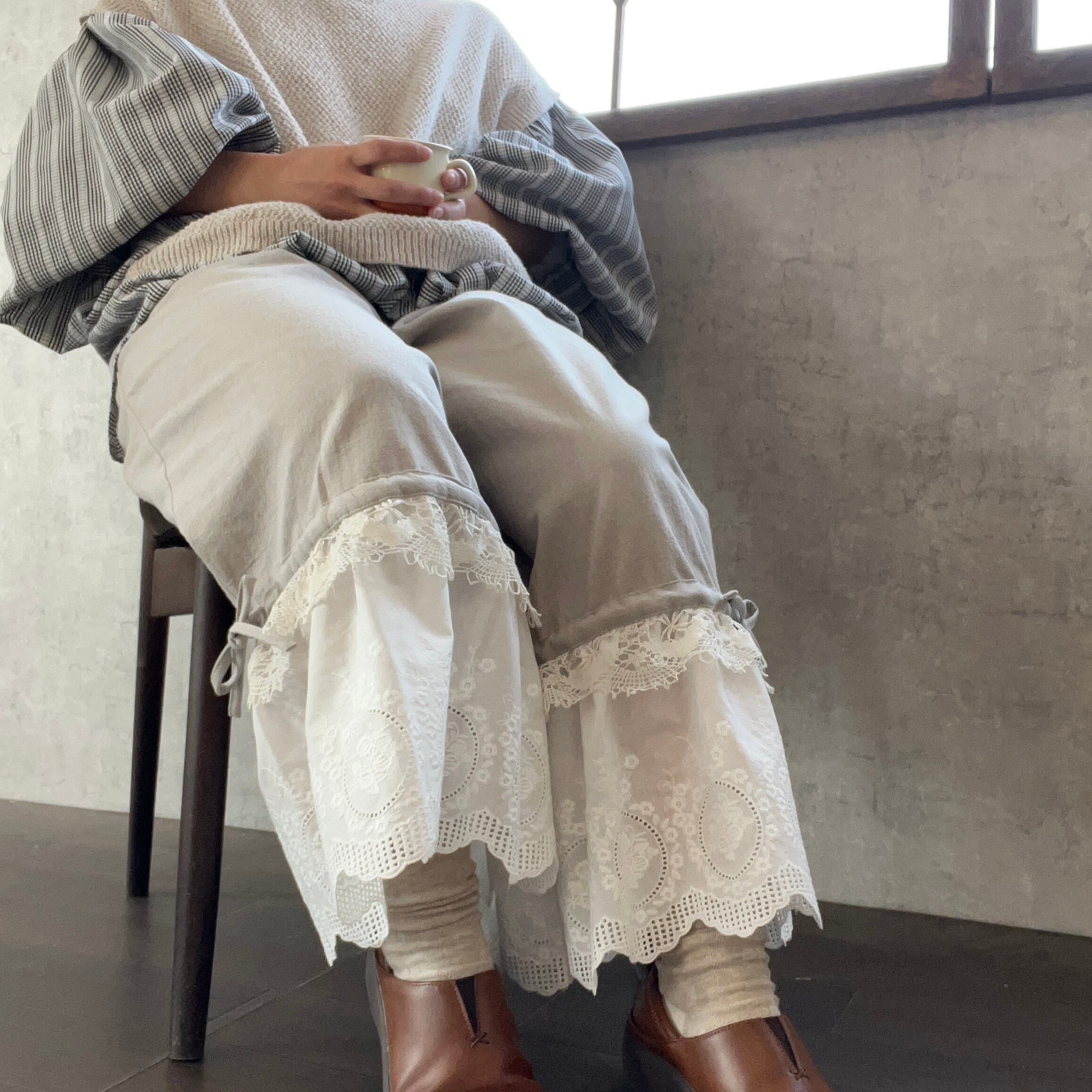足元で揺れる約20cm幅のレースは、スカートの下から覗かせても、これ一枚でボトムスとして楽しんでもOK!