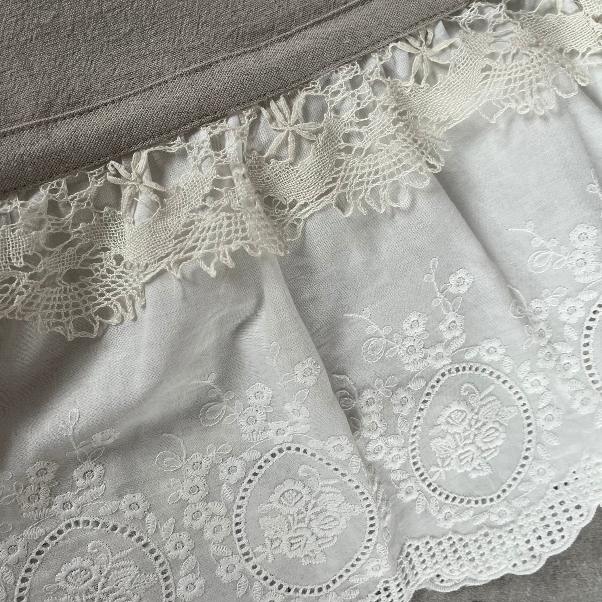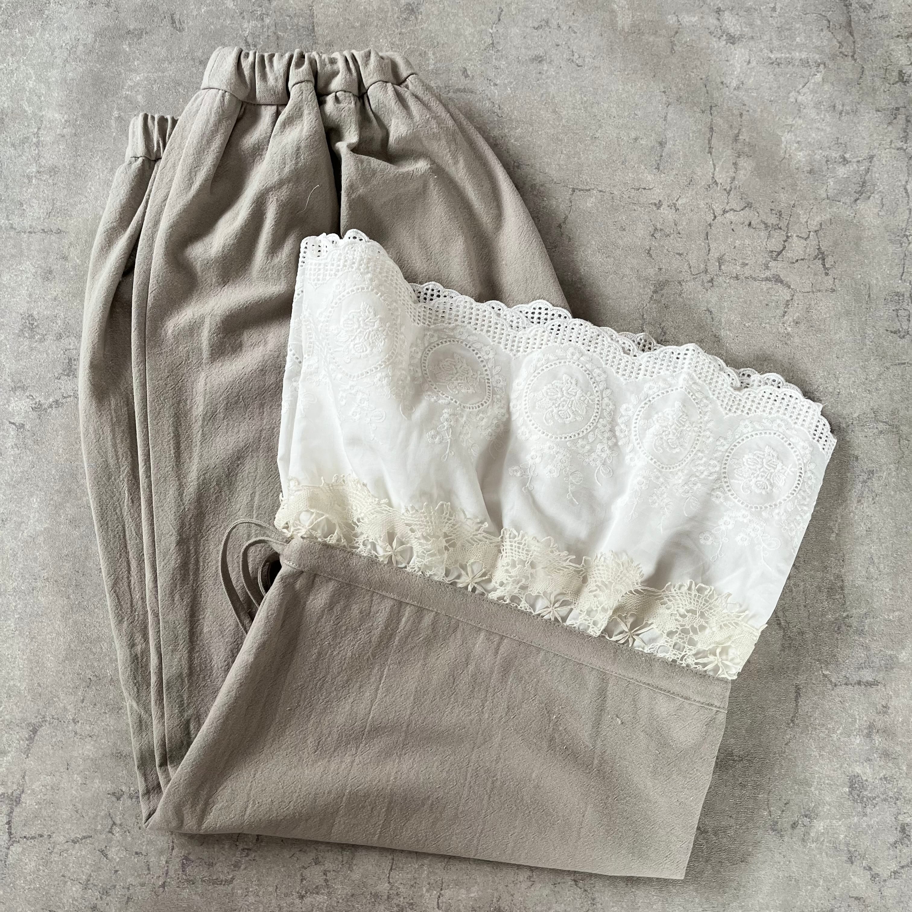 コットンリネンのくったりとした風合いに、裾には存在感たっぷりのアンティークレースを贅沢に使用