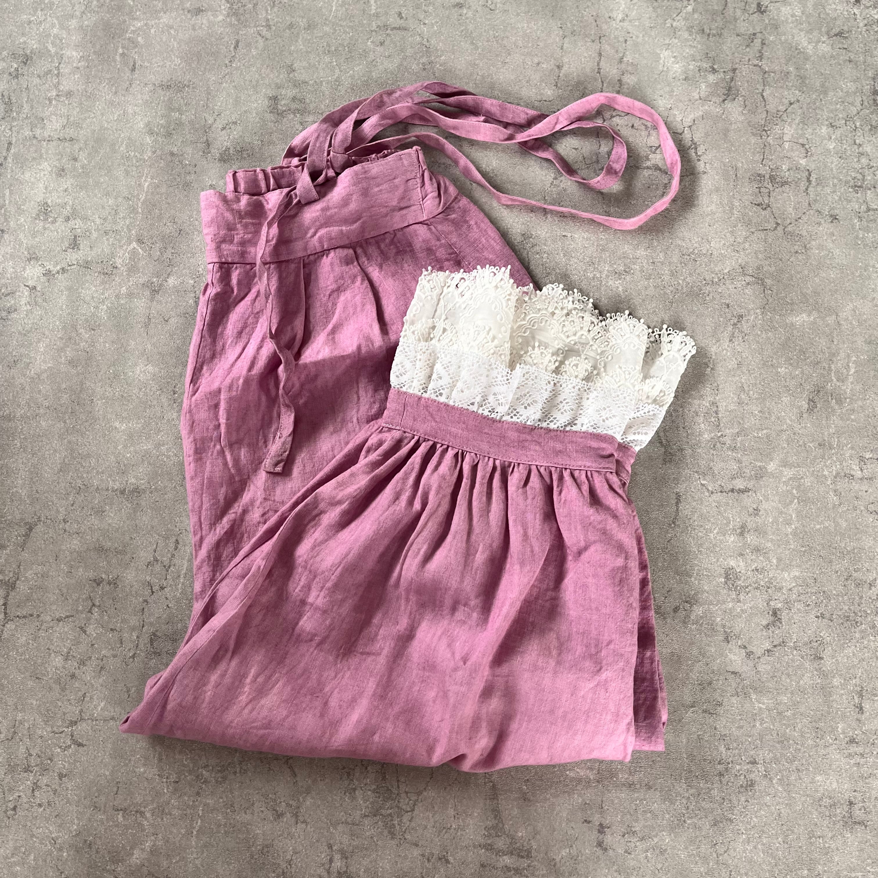 シンプルでありながら目を引く、こだわりの肩紐付きドロワーズパンツ
