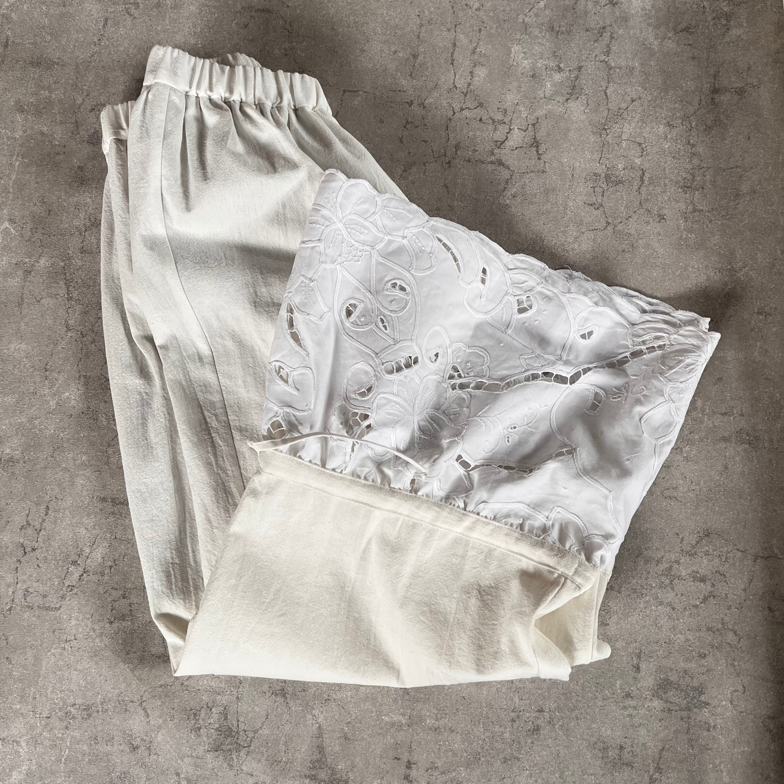 コットンリネンのくったりとした風合いに、裾には存在感たっぷりのアンティークレースを贅沢に使用