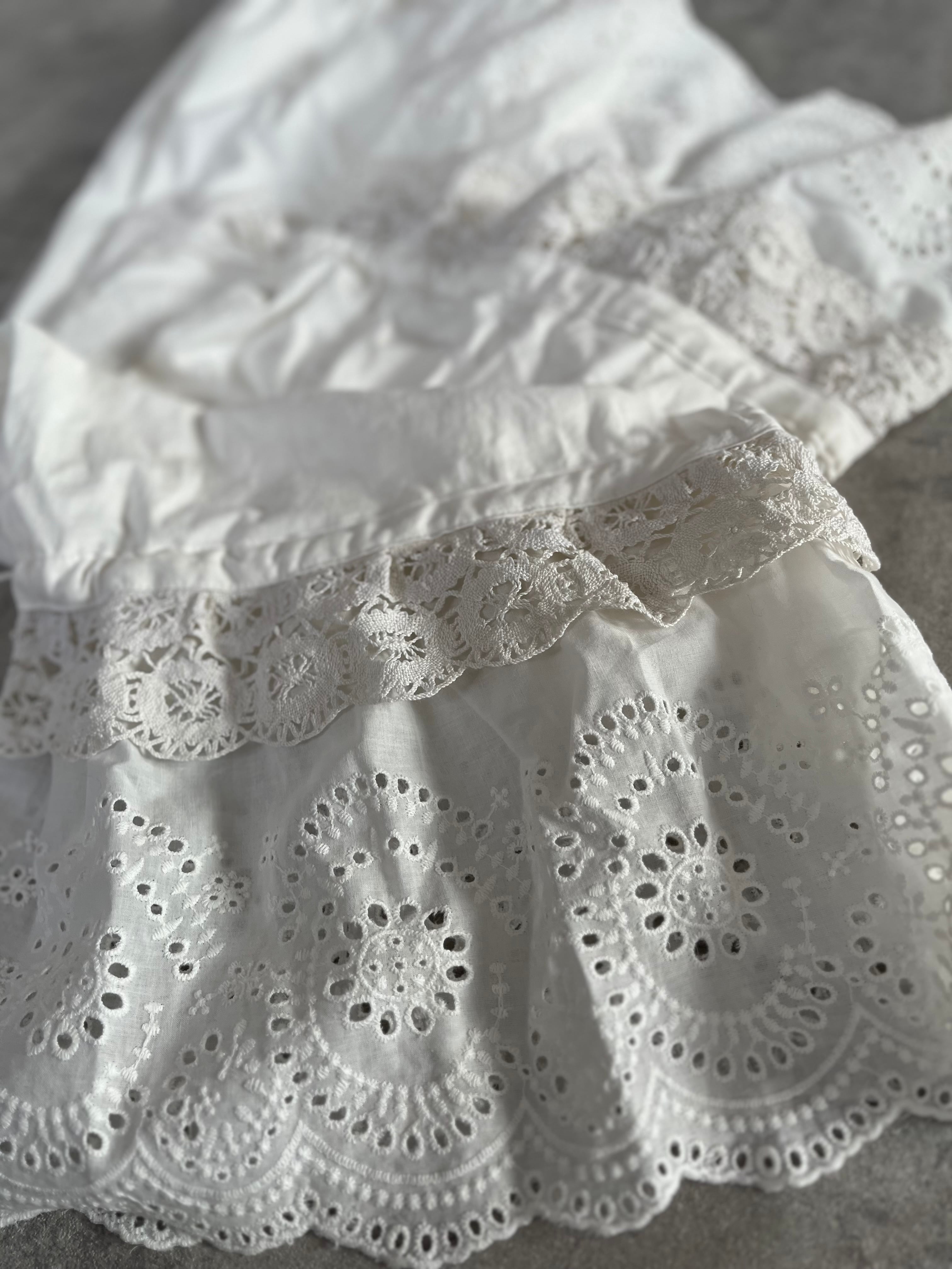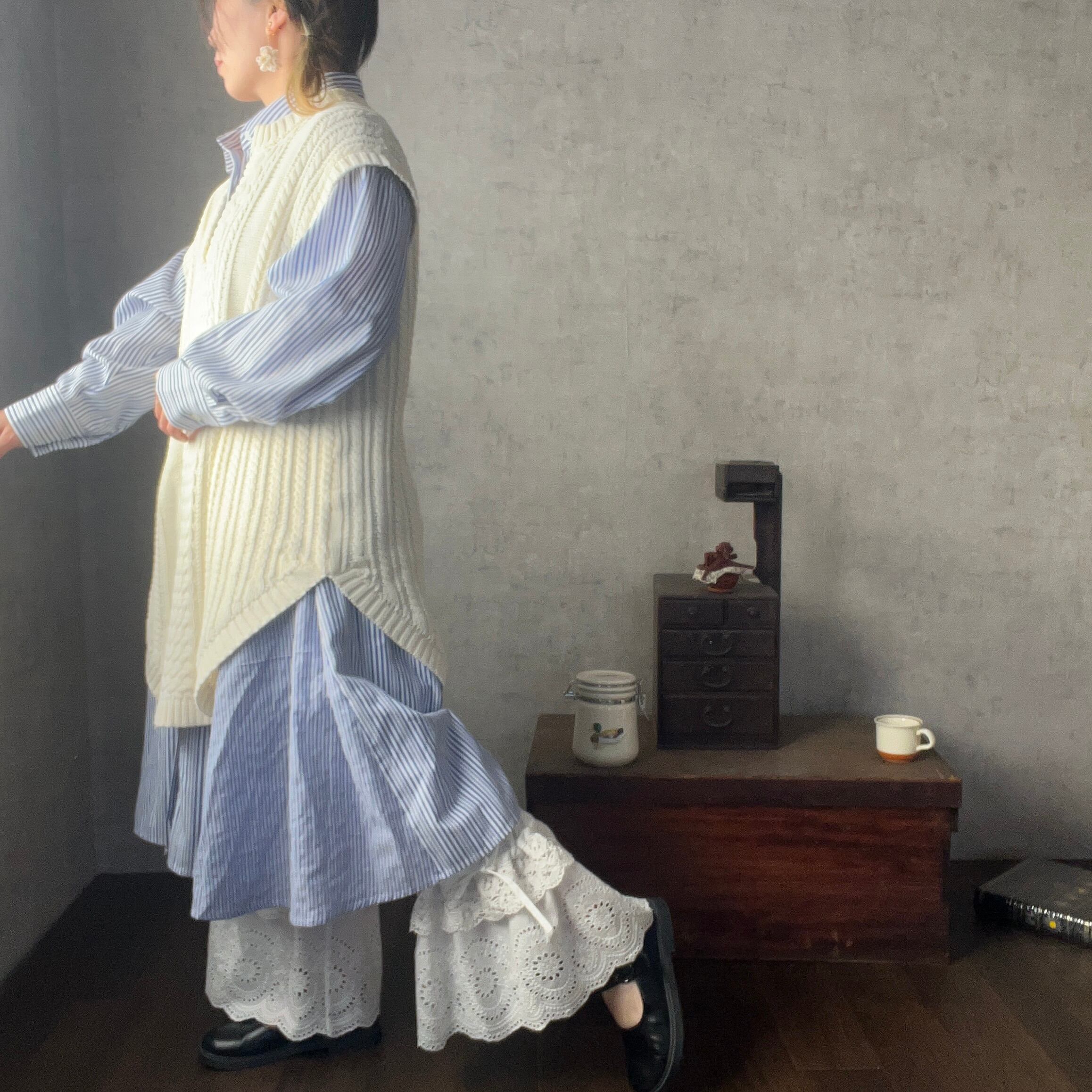 コットンリネンのくったりとした風合いに、裾には存在感たっぷりのアンティークレースを贅沢に使用